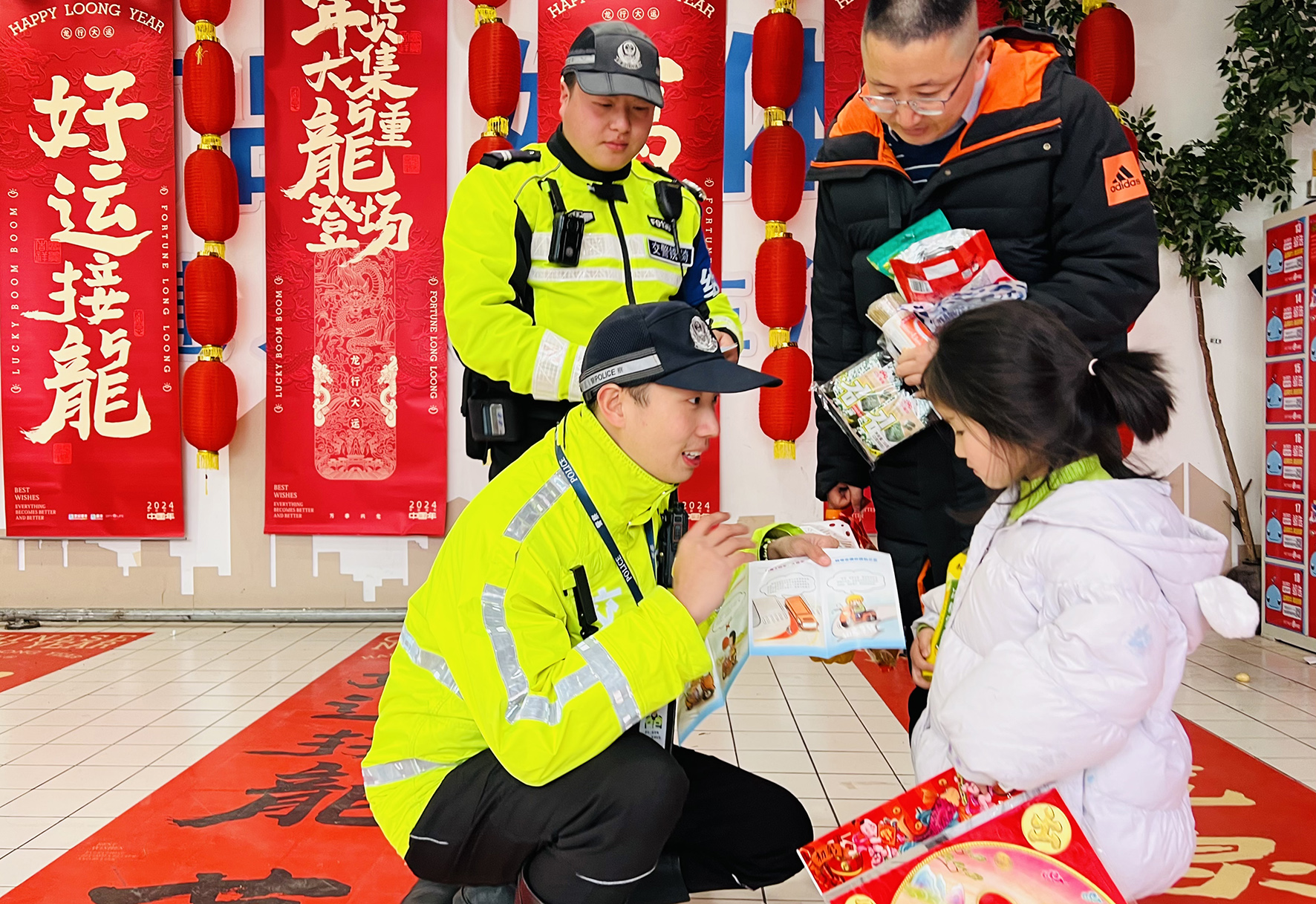 圖為2月20 日,民輔警在赤城路一家超市門口向市民宣傳交通安全知識。
