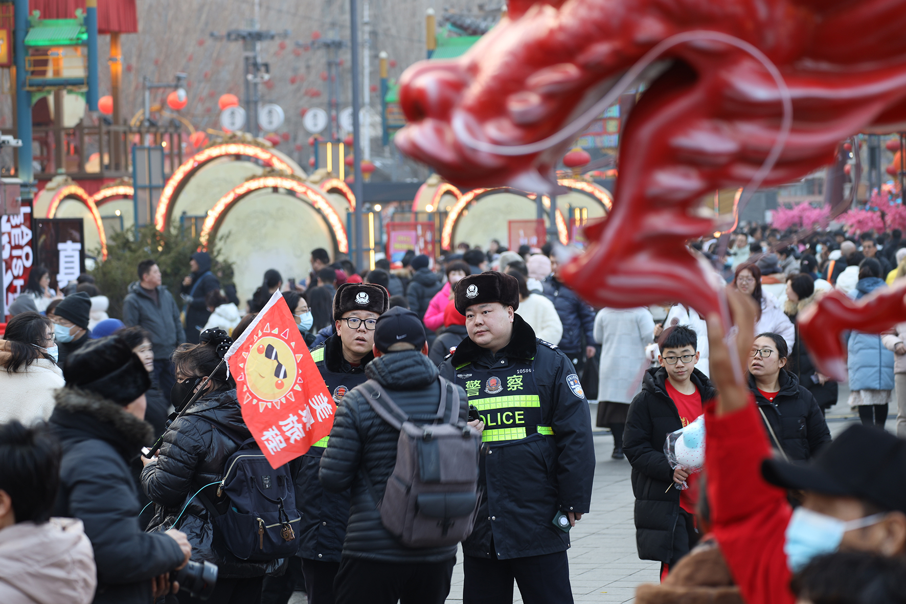 2月12日,遼寧省沈陽市北市場景區(qū)人頭攢動(dòng)、熱鬧非凡。沈陽市公安局提前制定安保方案,科學(xué)部署警力,切實(shí)保障景區(qū)安全。
