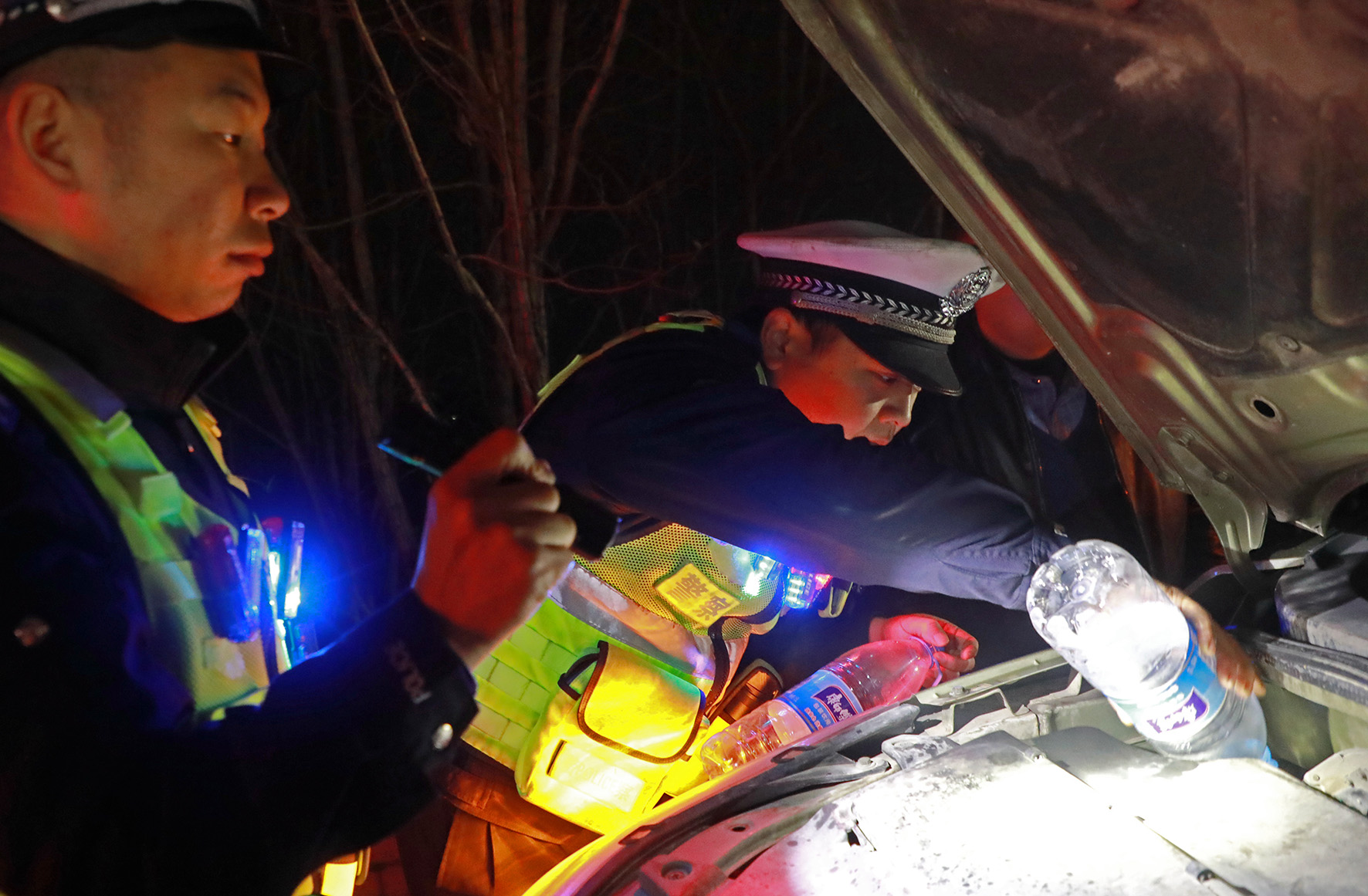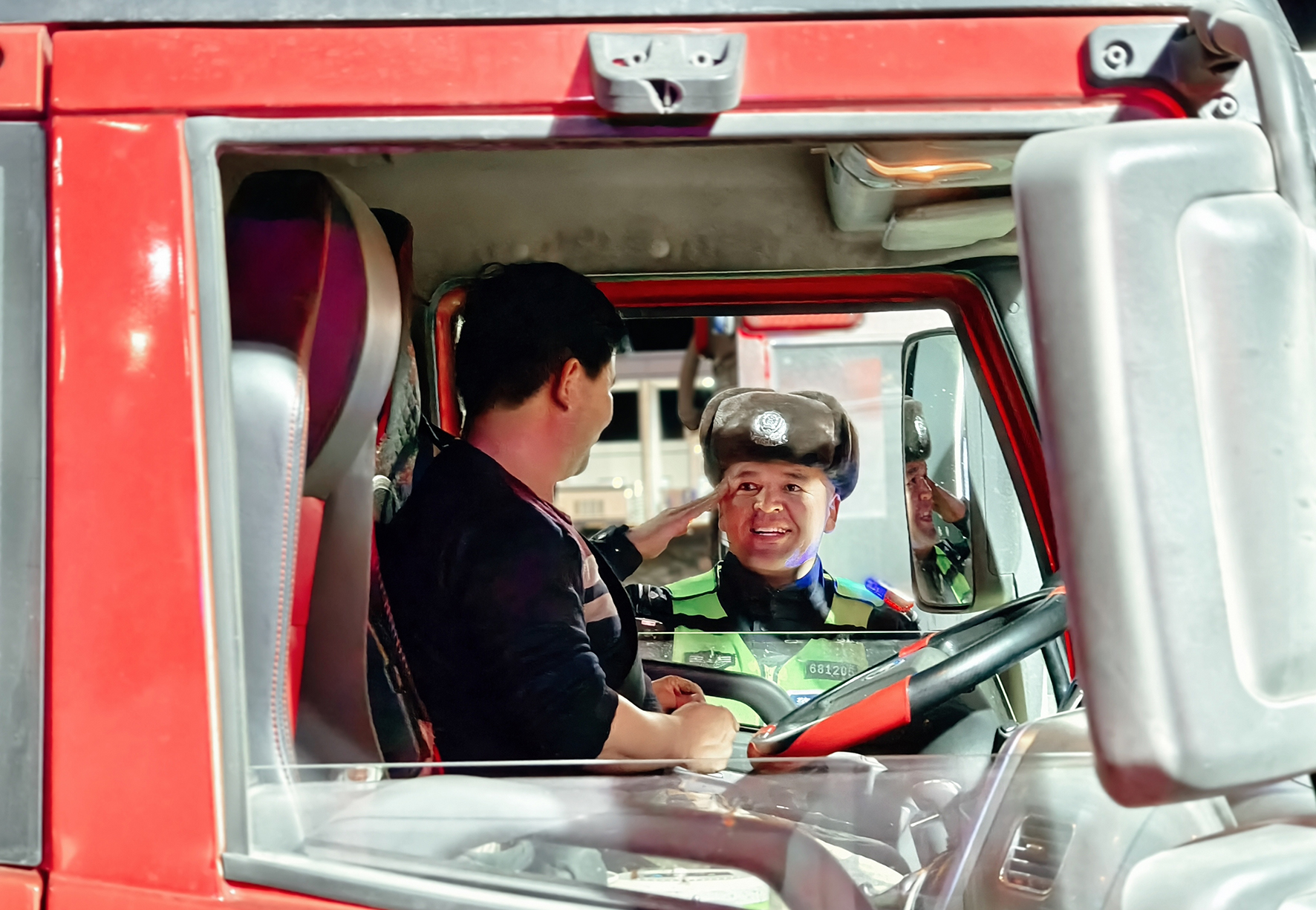 2月12日晚,新疆哈密邊境管理支隊(duì)白山泉邊境檢查站全體民輔警堅(jiān)守崗位,對過往車輛人員進(jìn)行檢查。
