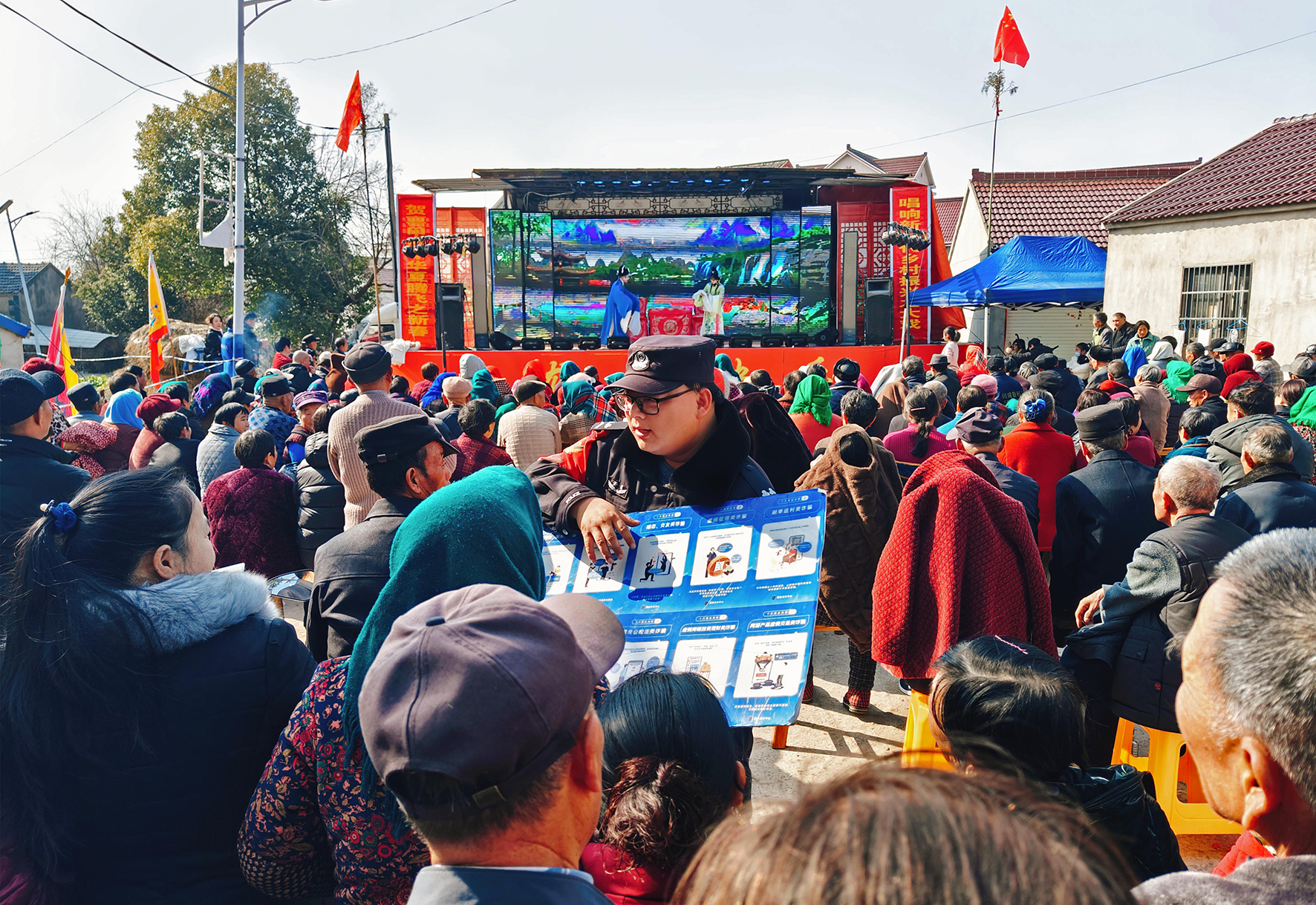2月11日,安徽省當(dāng)涂縣公安局烏溪派出所依托鄉(xiāng)村大舞臺(tái)等文藝活動(dòng),深入開展普法宣傳。
