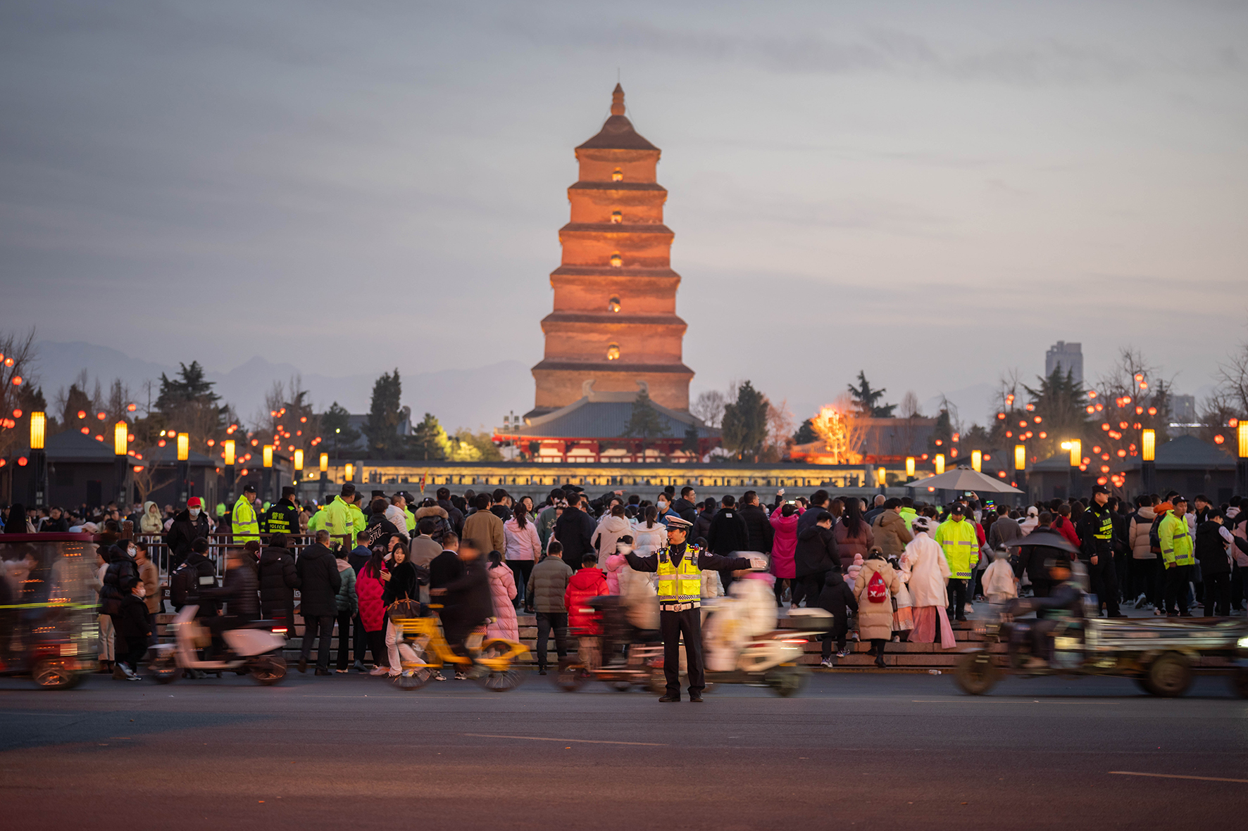 2月15日,陜西省西安市公安局交警支隊(duì)全警上路,確保道路交通安全及市民出行安全。