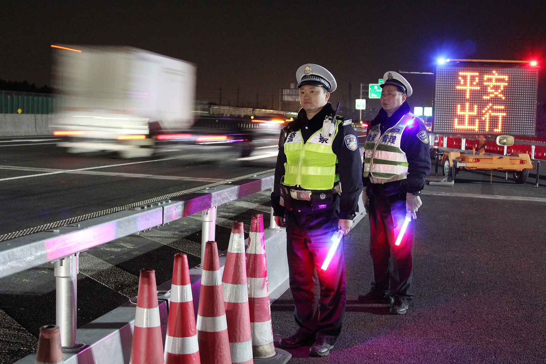 2月16日晚,上海市公安局嘉定分局交警支隊(duì)朱橋檢查站民輔警在G15沈海高速朱橋段駐守觀測、疏導(dǎo)返程入滬車流。