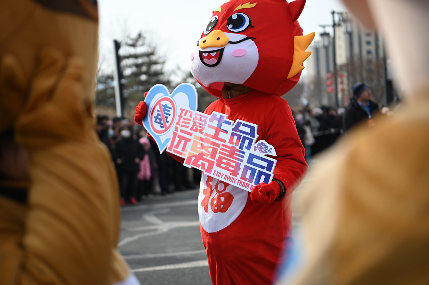 2月24日,山西省大同市廣靈縣元宵節(jié)文藝活動(dòng)表演現(xiàn)場(chǎng),禁毒宣傳志愿者在開展禁毒知識(shí)宣傳。