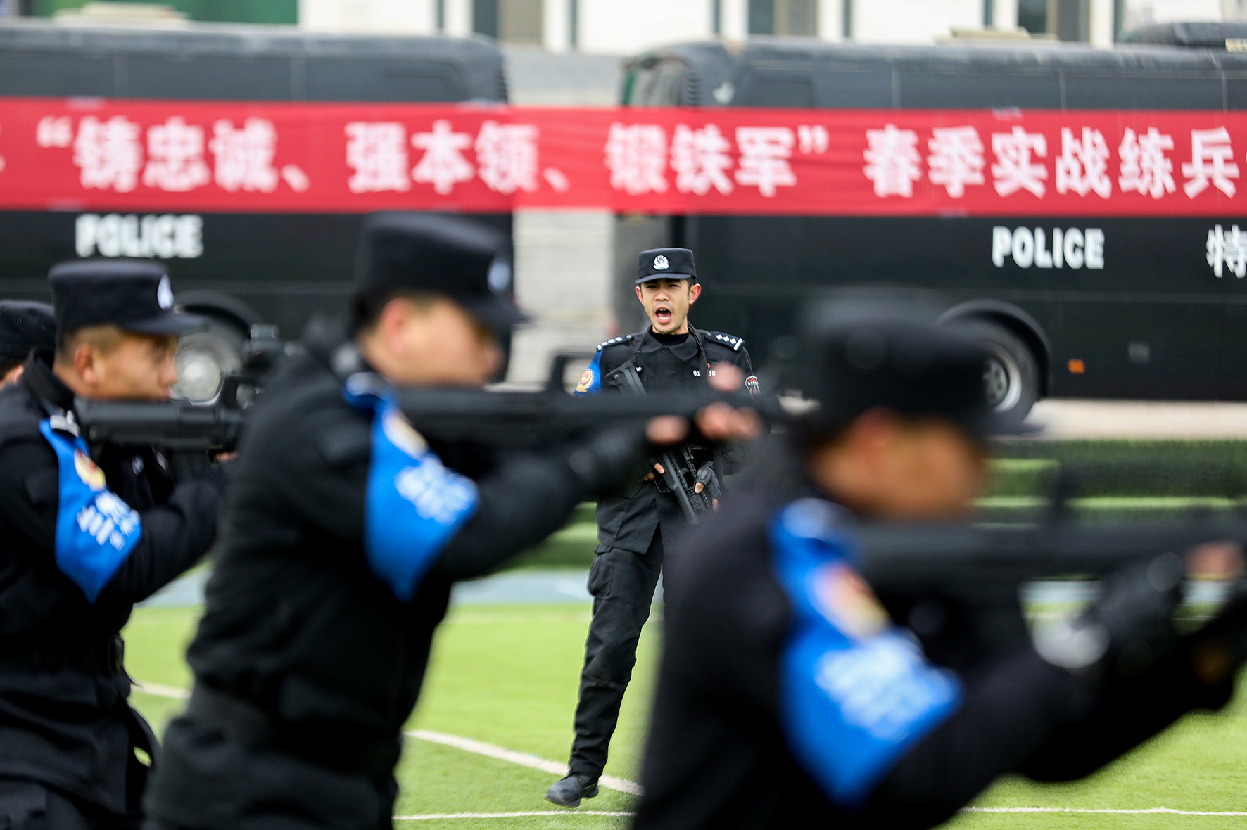 2月27日,甘肅蘭州市公安局特警隊(duì)伍開(kāi)展春季實(shí)戰(zhàn)訓(xùn)練,百名特戰(zhàn)隊(duì)員在訓(xùn)練場(chǎng)上開(kāi)展持槍?xiě)?zhàn)術(shù)動(dòng)作、突擊攻堅(jiān)戰(zhàn)術(shù)、盾棍叉小組戰(zhàn)術(shù)、無(wú)人機(jī)操作、體能對(duì)抗等多項(xiàng)警事技能訓(xùn)練,拉開(kāi)2024春季大練兵序幕。