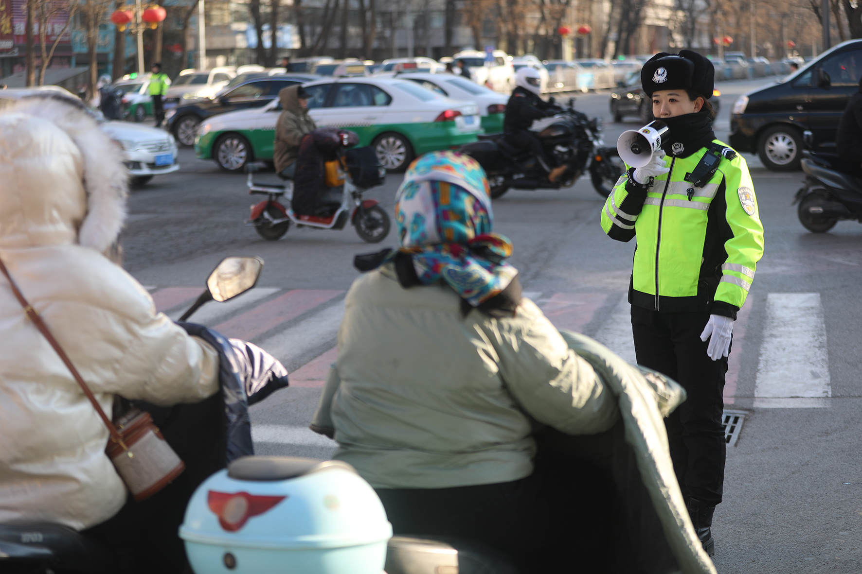 3月12日早高峰時(shí)段,遼寧省阜新市公安局交通警察支隊(duì)海州大隊(duì)民警輔警在花園崗路口對(duì)騎電動(dòng)自行車沒有佩戴頭盔的市民進(jìn)行勸導(dǎo)。