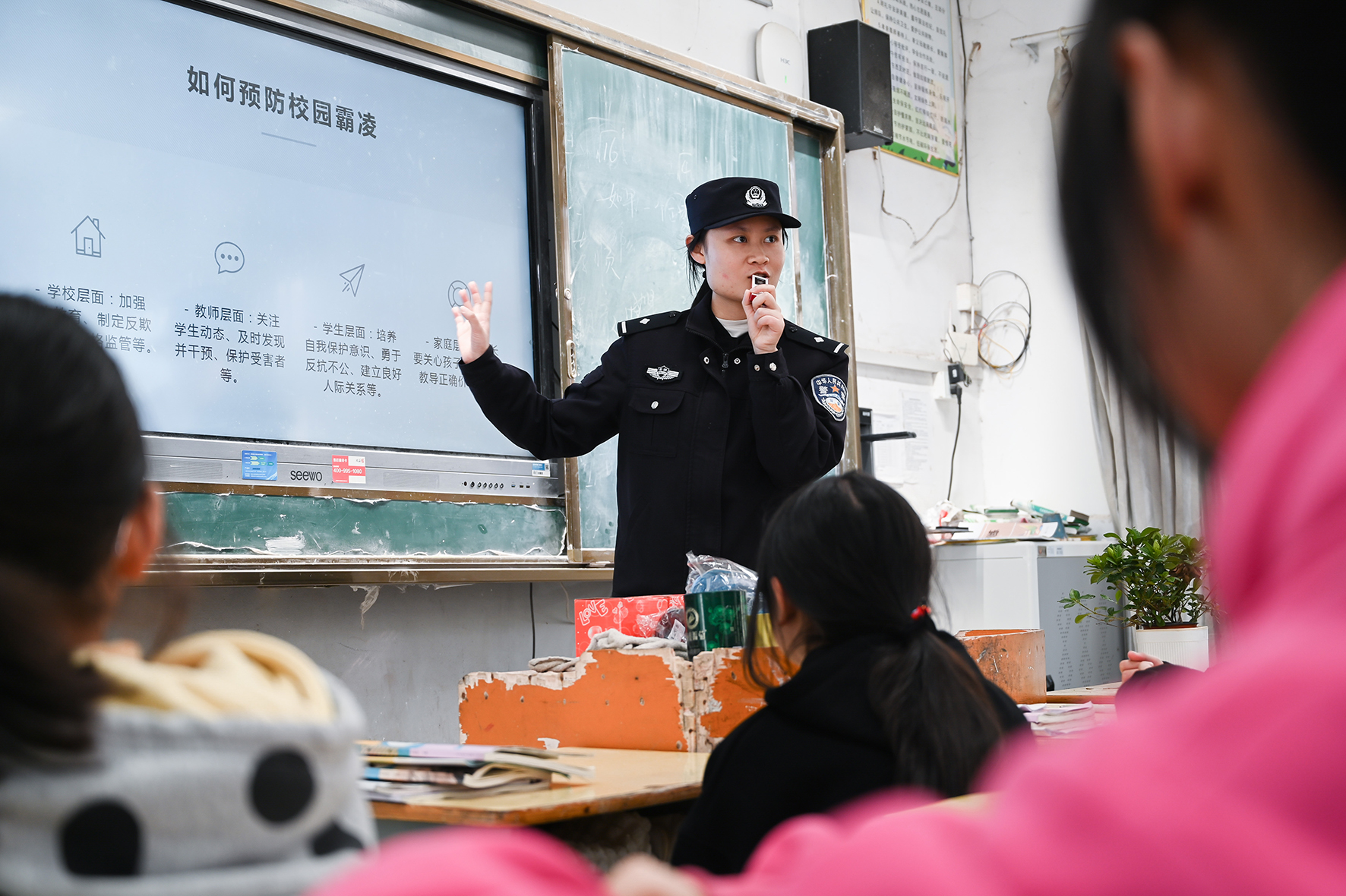 3月15日,安徽省馬鞍山市和縣公安局民警在石楊中學(xué)開展“拒絕校園霸凌”主題法治宣講,引導(dǎo)青少年樹立正確的人生觀和價(jià)值觀。