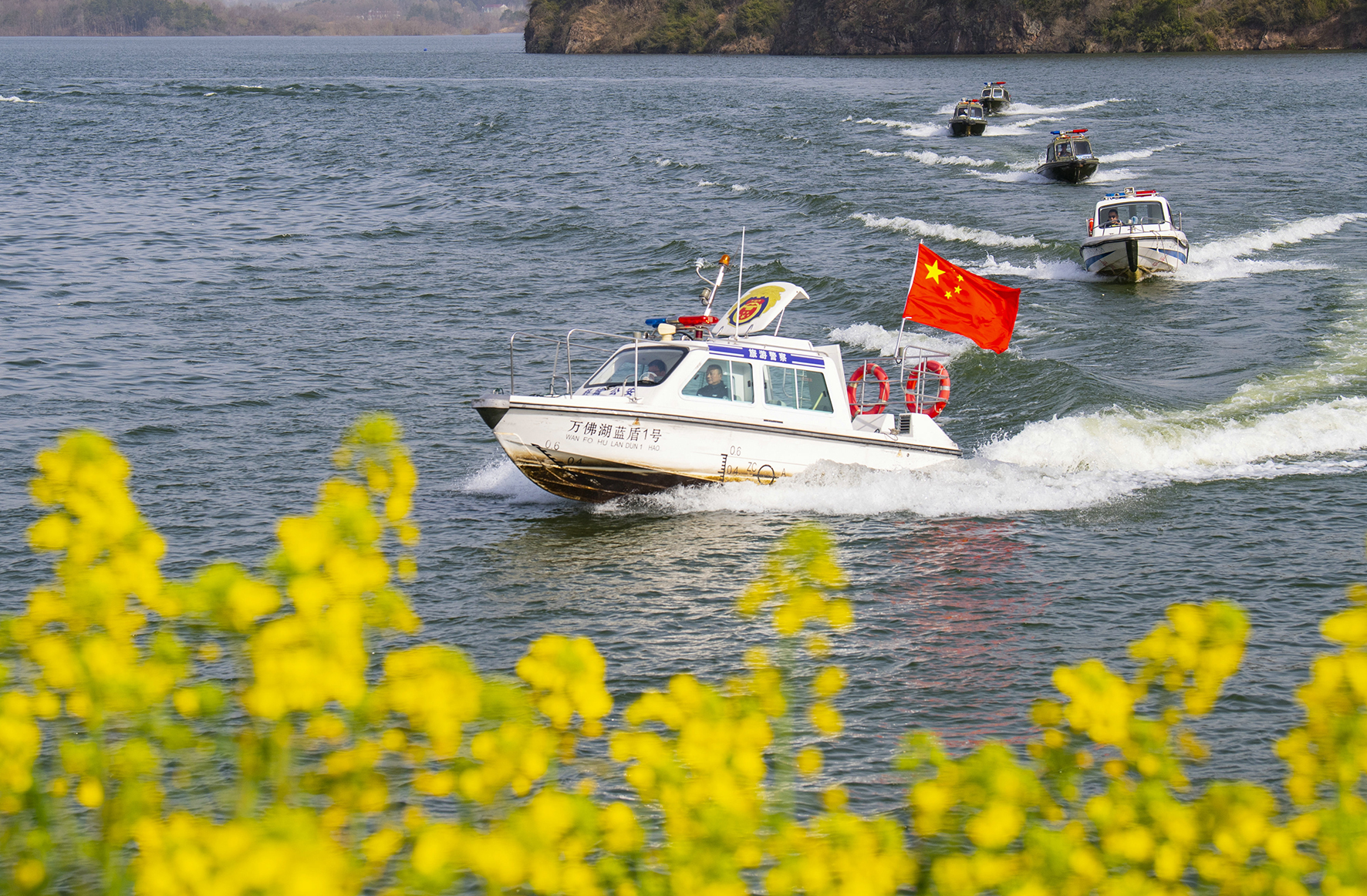 陽春三月,碧波蕩漾。3月19日,安徽省舒城縣公安局萬佛湖旅游度假區(qū)派出所聯(lián)合萬佛湖管委會(huì)行政執(zhí)法局、農(nóng)村工作局、萬佛湖漁政站、漁業(yè)公司護(hù)漁大隊(duì)等單位在萬佛湖湖面上開展巡邏守護(hù)。