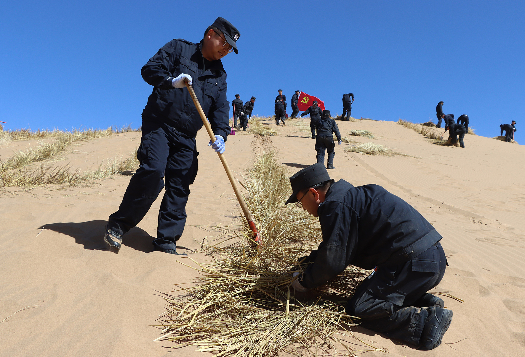 3月19日,甘肅省武威市古浪縣公安局積極響應(yīng)縣委、縣政府號召,組織各警種部門民輔警200余人,深入騰格里沙漠南緣、古浪縣北部頭道溝壓沙區(qū),開展全縣春季義務(wù)壓沙活動。