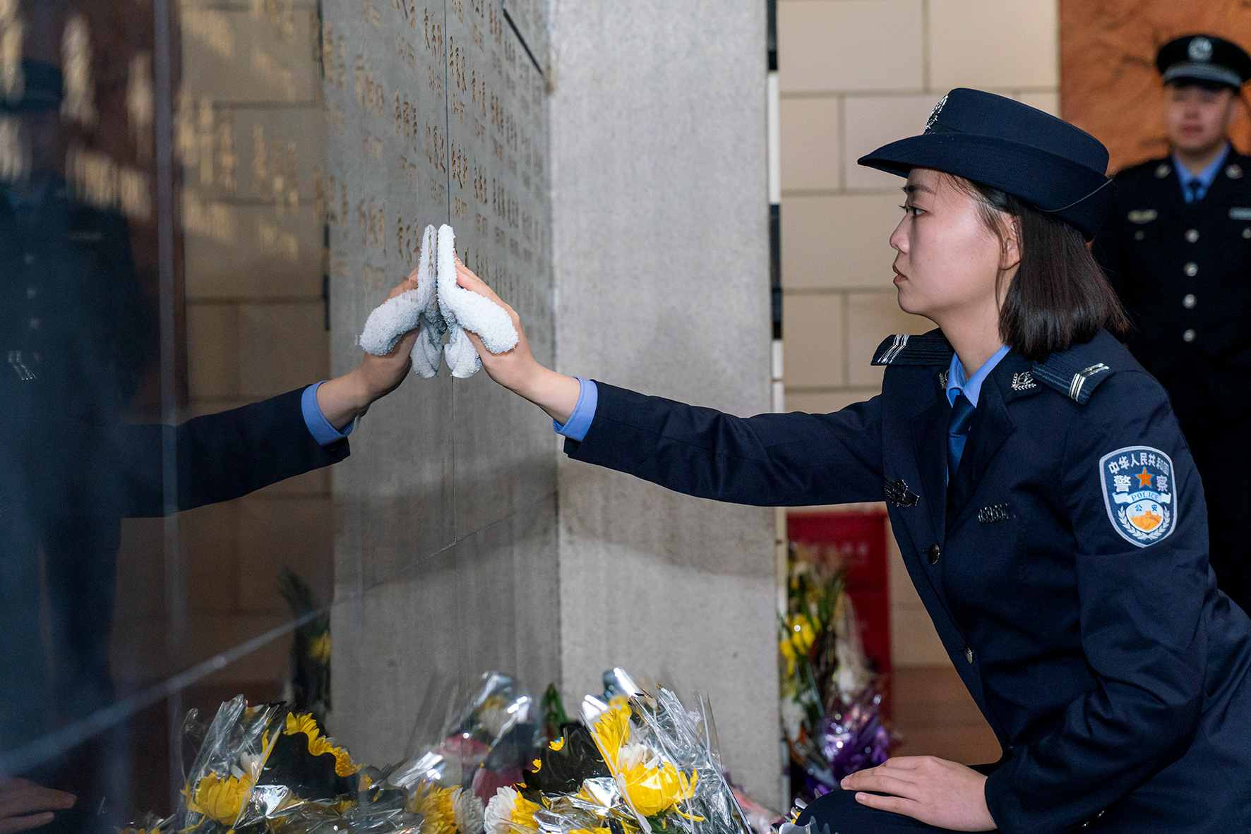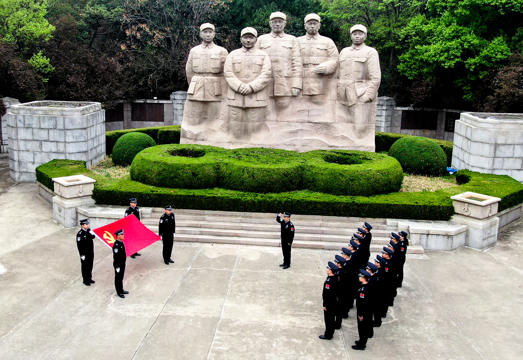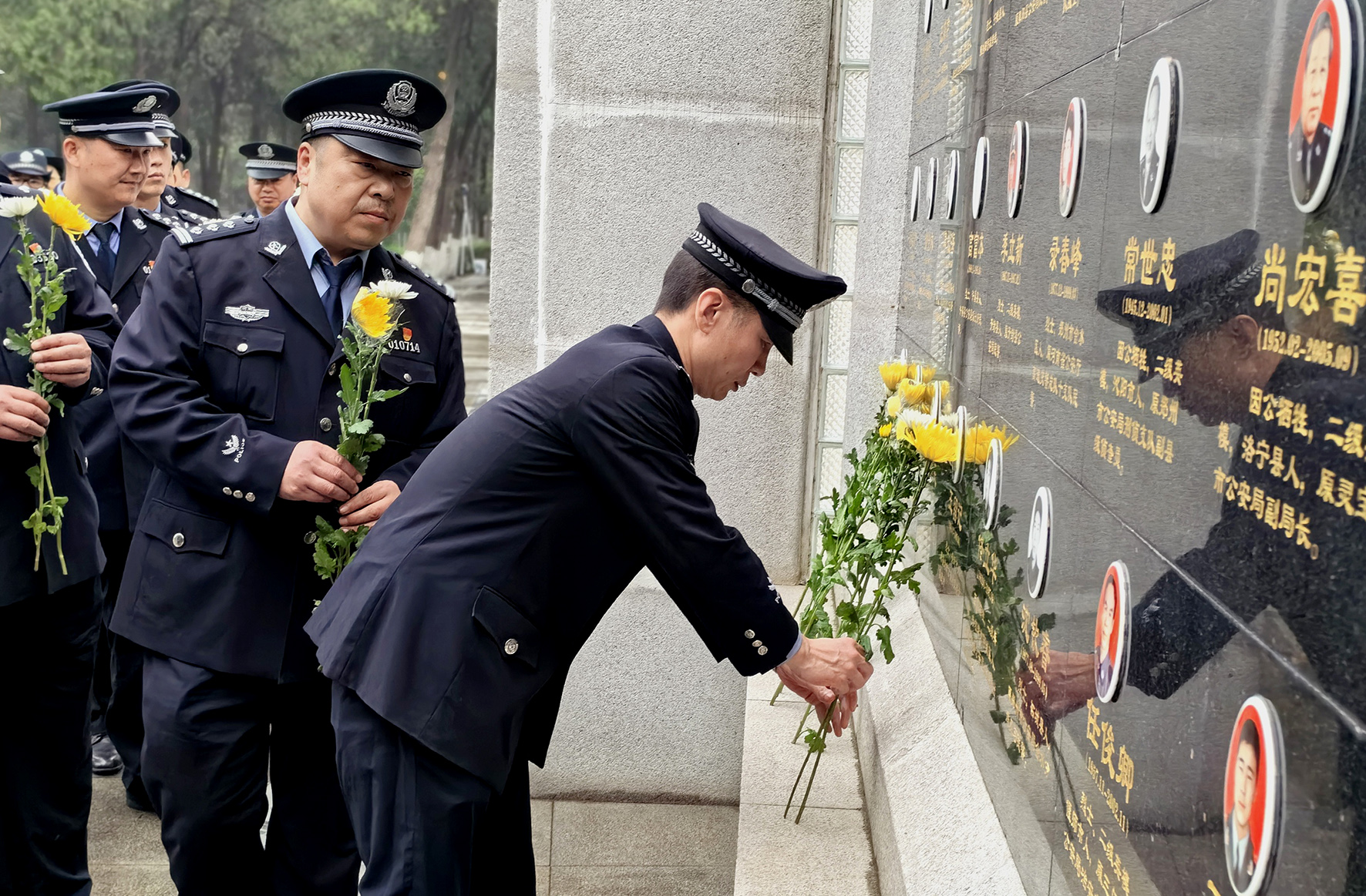 4月1日,河南省鄭州市公安局金水分局暨巡特警的百余名部分優(yōu)秀民警在鄭州烈士陵園公安英烈墻前緬懷瞻仰獻(xiàn)花。