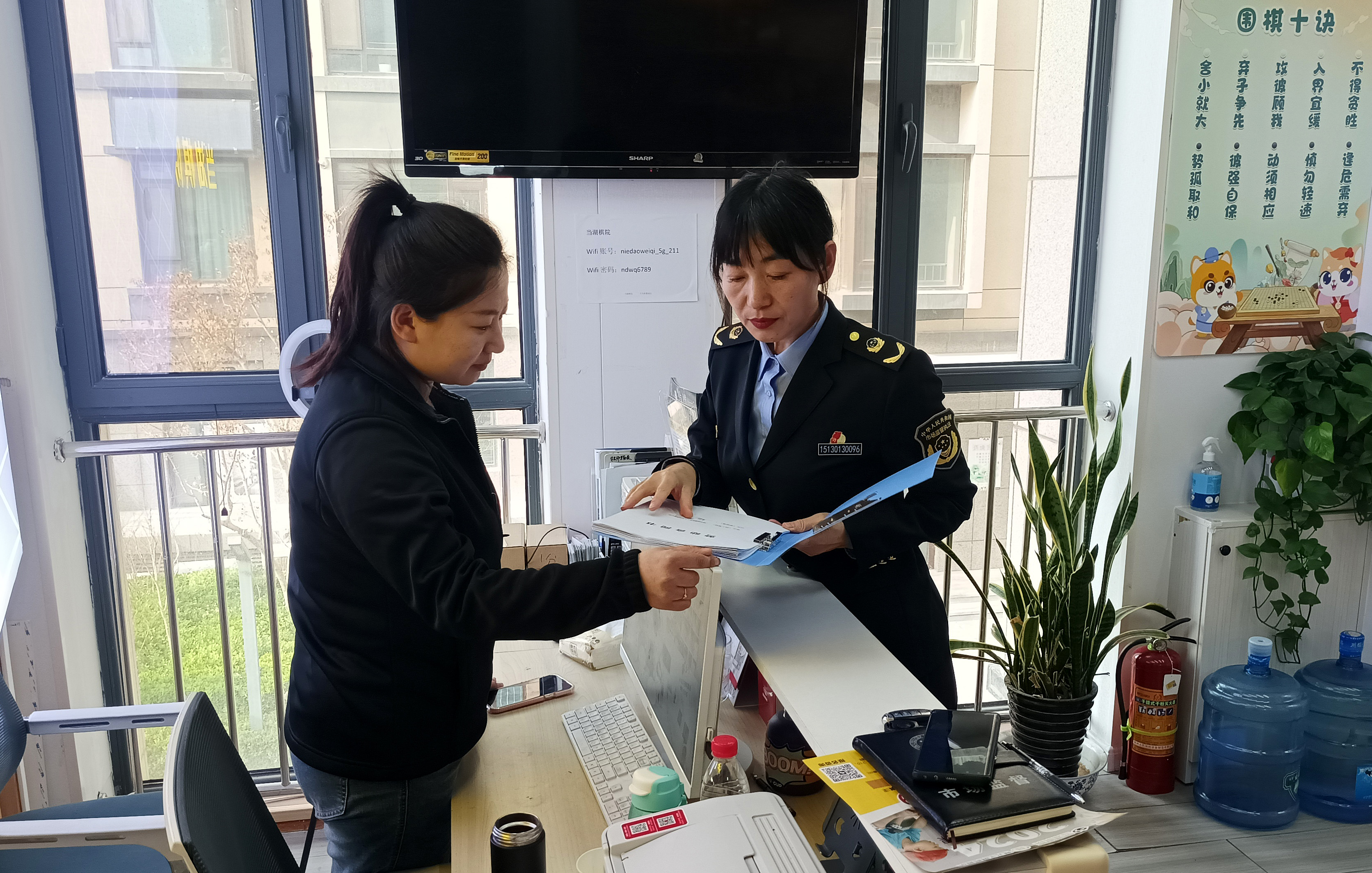 圖為執(zhí)法人員走進(jìn)商戶檢查格式合同內(nèi)容及使用情況。