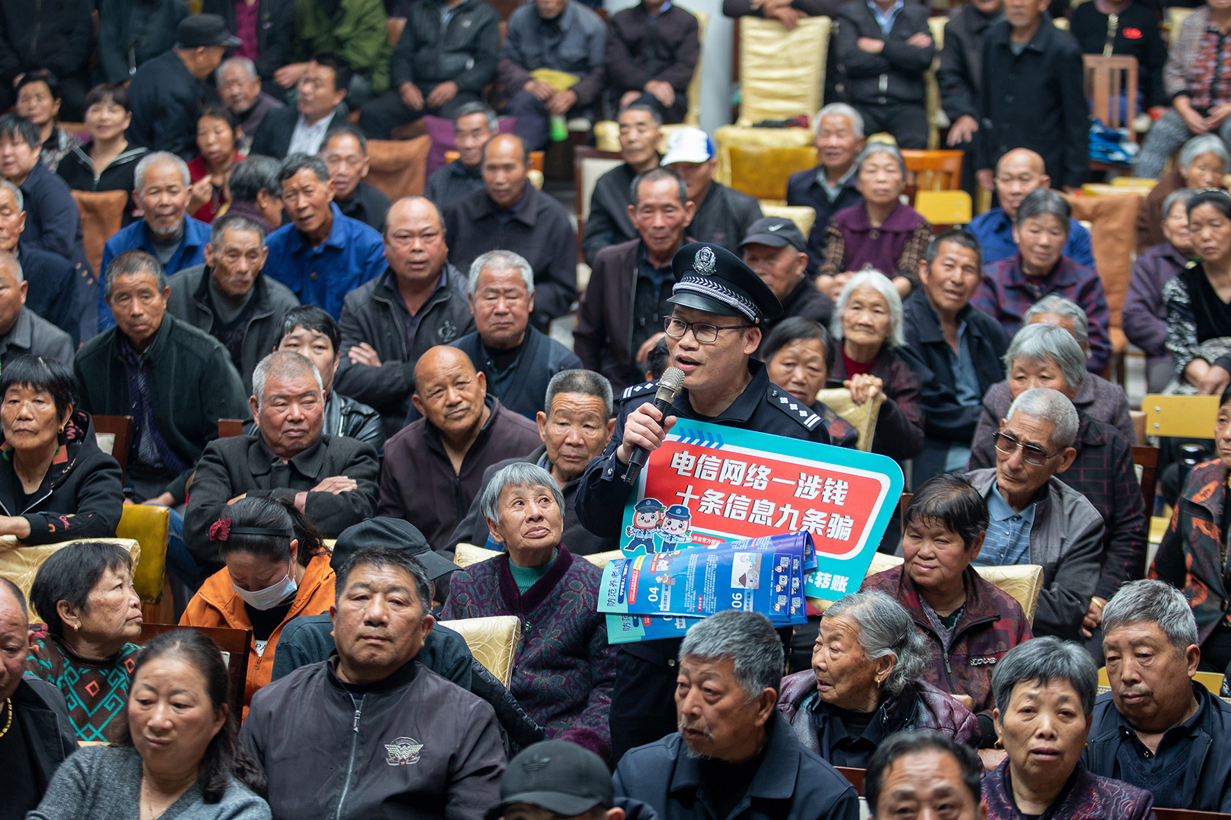 為了提升老年人防范詐騙侵害的意識(shí),4月13日,浙江省臺(tái)州市公安局黃巖分局城南派出所民警利用高橋街道螺嶼村老年人集中看社戲的機(jī)會(huì),進(jìn)行安全防范宣傳。