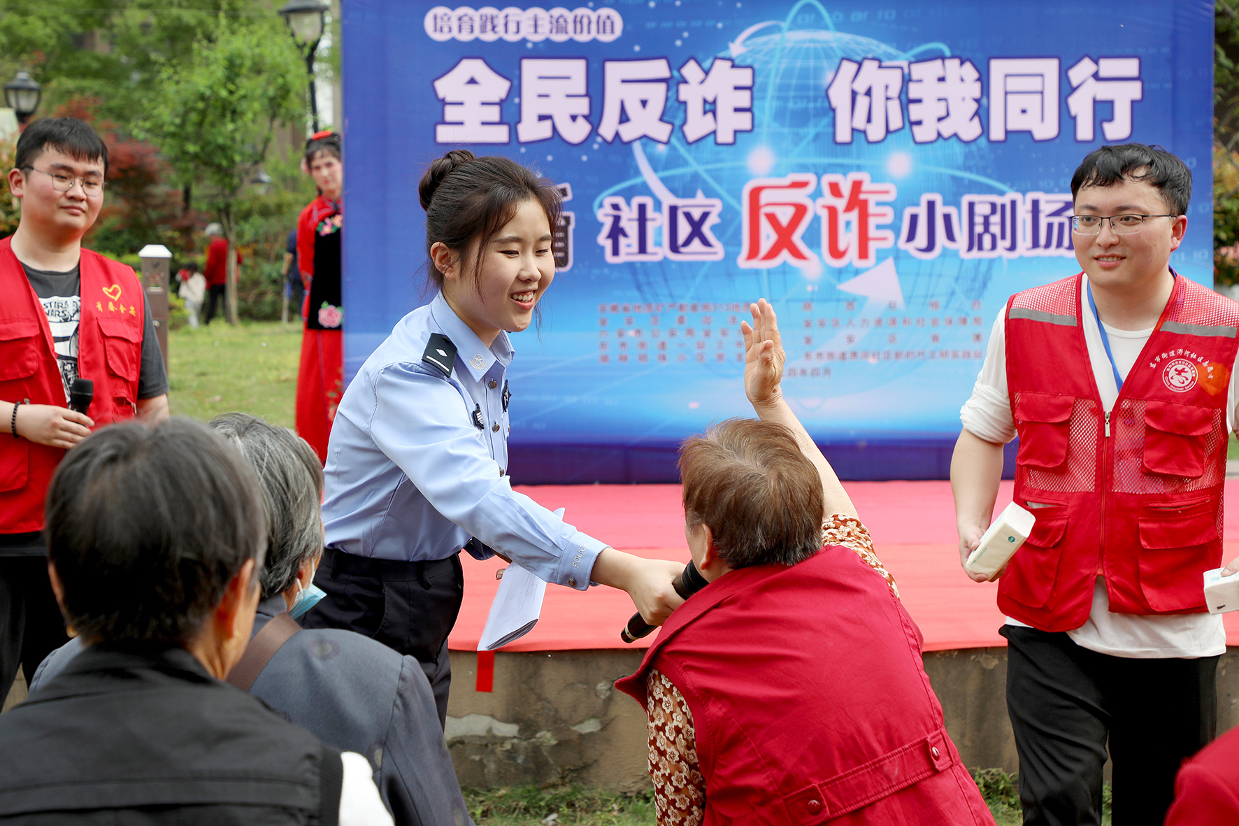 為進(jìn)一步提升居民識(shí)騙防騙意識(shí),創(chuàng)新開展防范電信網(wǎng)絡(luò)詐騙宣傳,4月15日,由安徽省六安市金安區(qū)東市街道淠河社區(qū)主辦開展的“社區(qū)反詐小劇場(chǎng)”開演,現(xiàn)場(chǎng)通過民警面對(duì)面以案說法、社區(qū)工作人員自編自導(dǎo)自演反電詐短劇、互動(dòng)有獎(jiǎng)競答等形式,讓群眾在寓教于樂的氛圍中學(xué)習(xí)反詐知識(shí),增強(qiáng)反詐技能,筑牢反詐“防護(hù)網(wǎng)”。