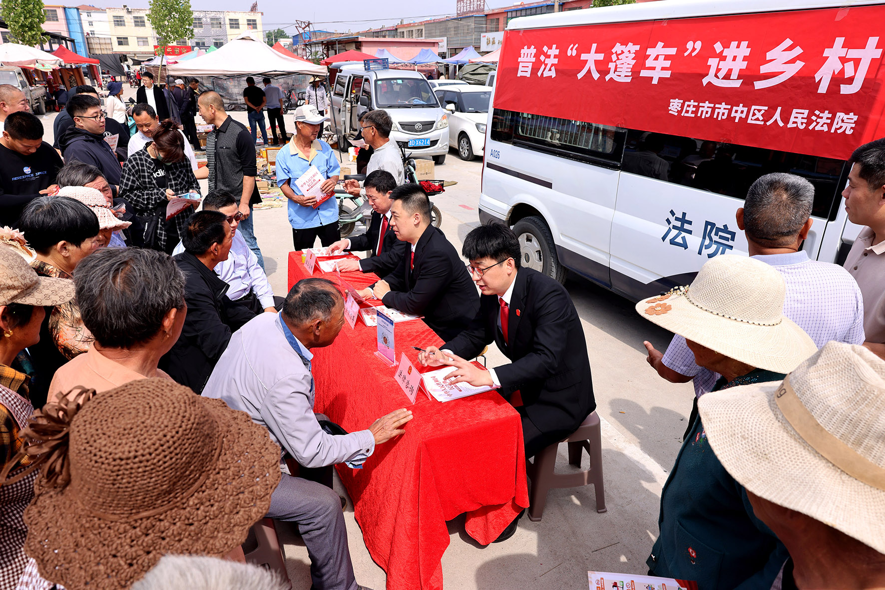 5月9日,山東省棗莊市市中區(qū)人民法院稅郭法庭的法官在鄉(xiāng)村大集向群眾宣傳法律知識(shí)。近年來(lái),市中區(qū)人民法院開(kāi)展普法“大篷車(chē)”進(jìn)鄉(xiāng)村活動(dòng),巡回把“大篷車(chē)”開(kāi)進(jìn)集市、村莊、田間地頭等,向群眾宣傳農(nóng)村土地承包、高額彩禮、民間借貸等相關(guān)法律知識(shí),進(jìn)一步增強(qiáng)群眾法治觀念和法律意識(shí)。