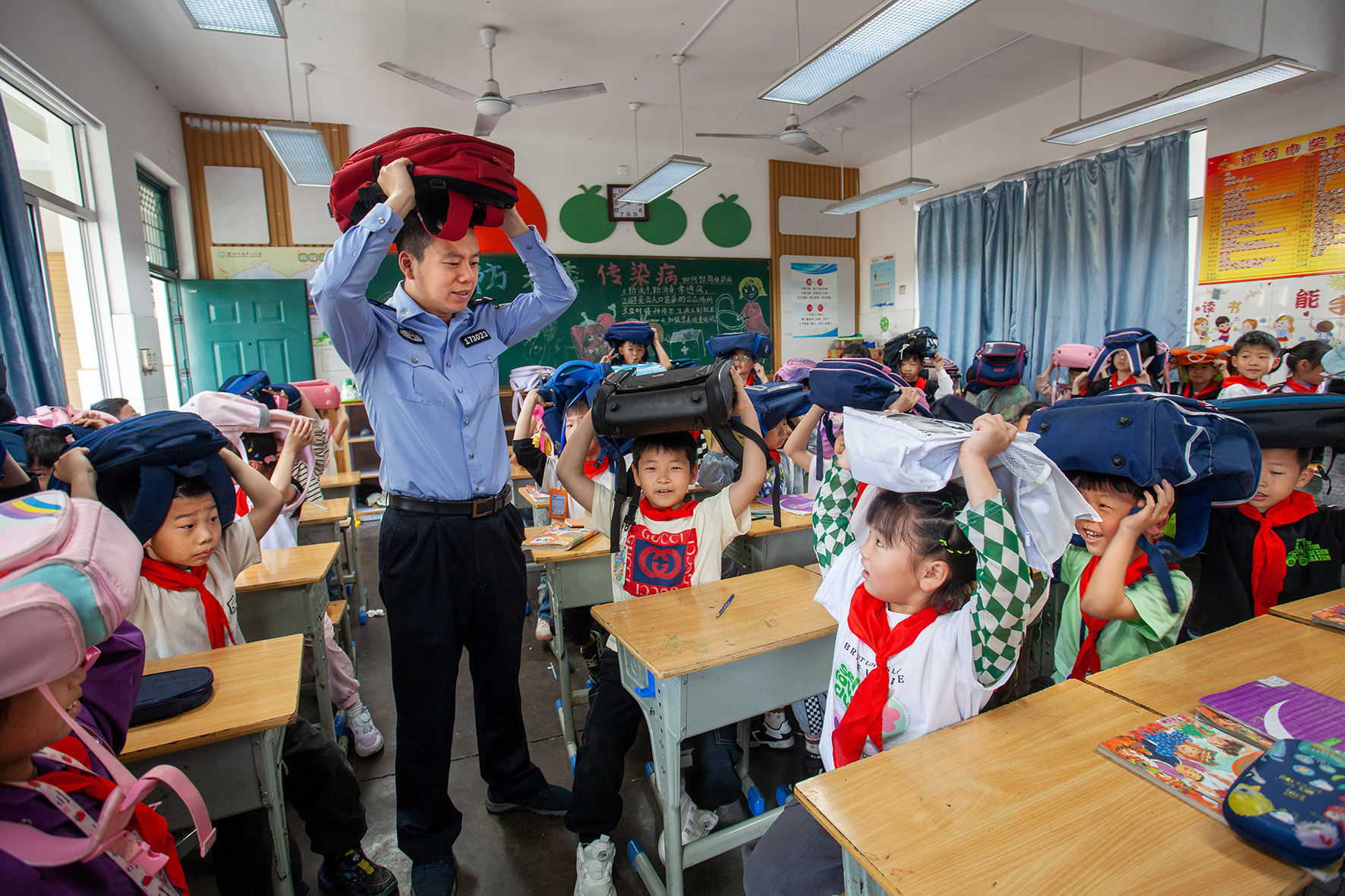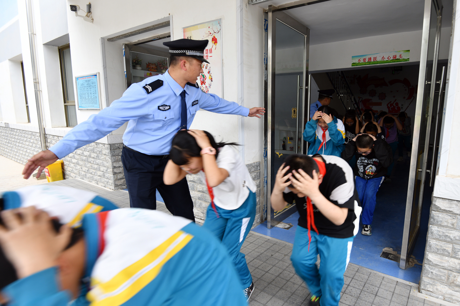 5月9日,安徽省合肥市公安局瑤海分局龍崗派出所民警走進(jìn)轄區(qū)學(xué)校開(kāi)展防震減災(zāi)應(yīng)急疏散演練活動(dòng)。