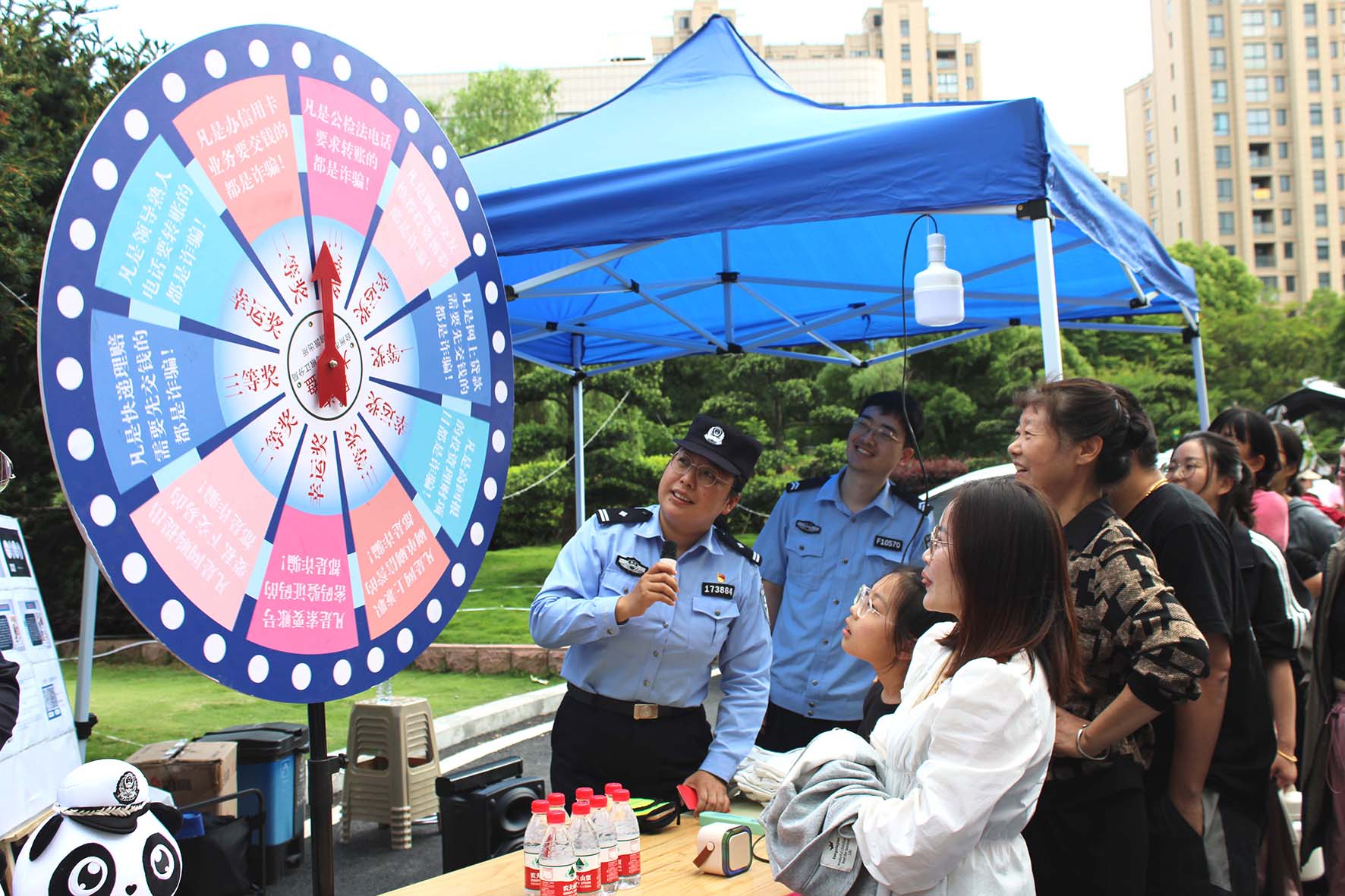 圖為“反詐大轉(zhuǎn)盤”游戲吸引了眾多群眾積極參與。