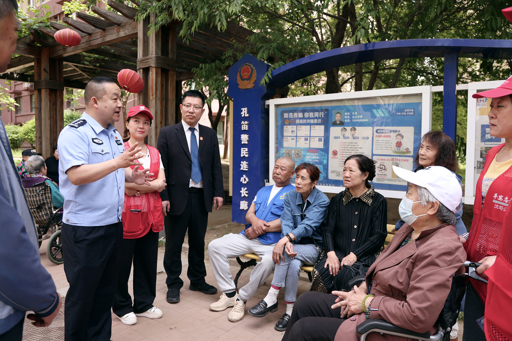 圖為5月14日,民警與法官向老年人講解如何利用法律知識(shí)化解鄰里糾紛。