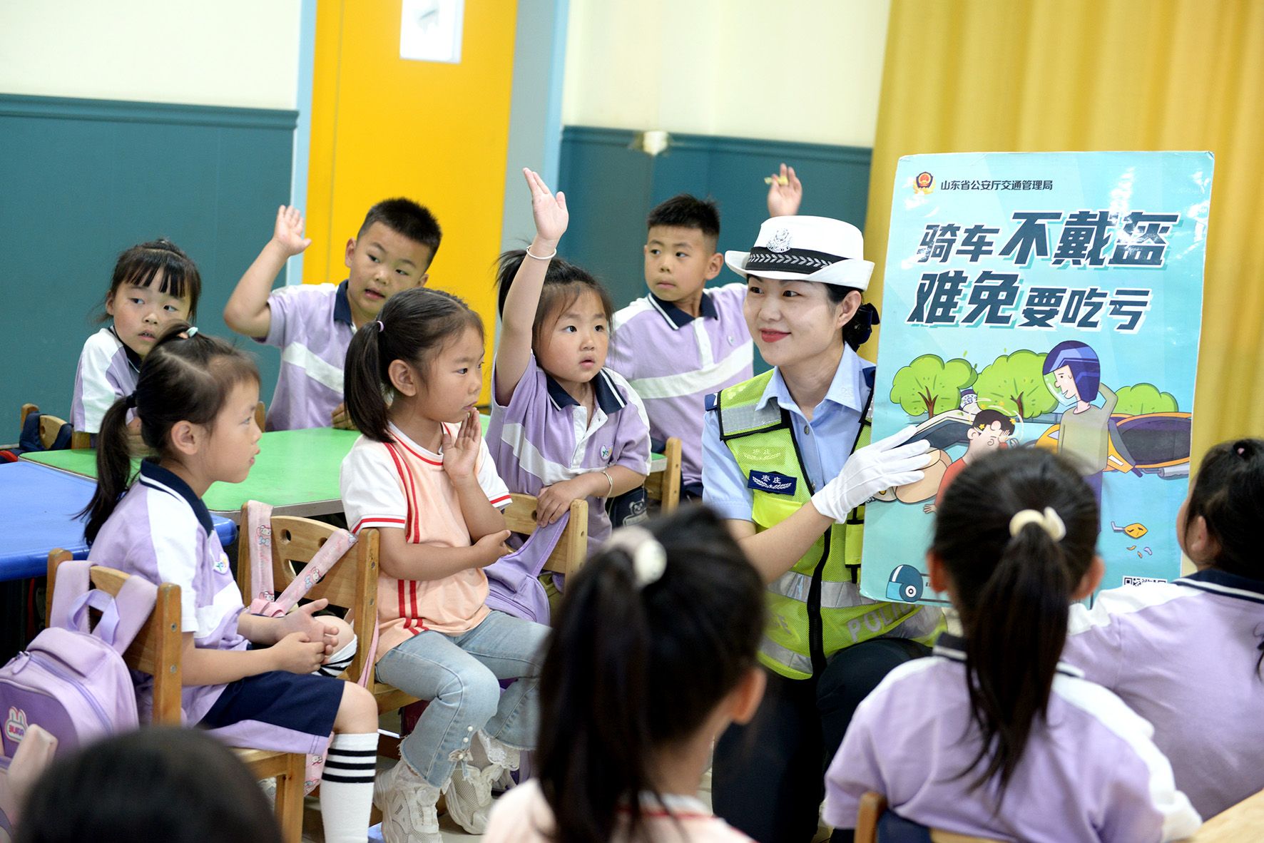 5月27日,山東省棗莊市公安局山亭分局交警大隊走進轄區(qū)海子社區(qū)陽光幼兒園,以寓教于樂的方式,為小朋友們上了一堂生動有趣的交通安全教育課。