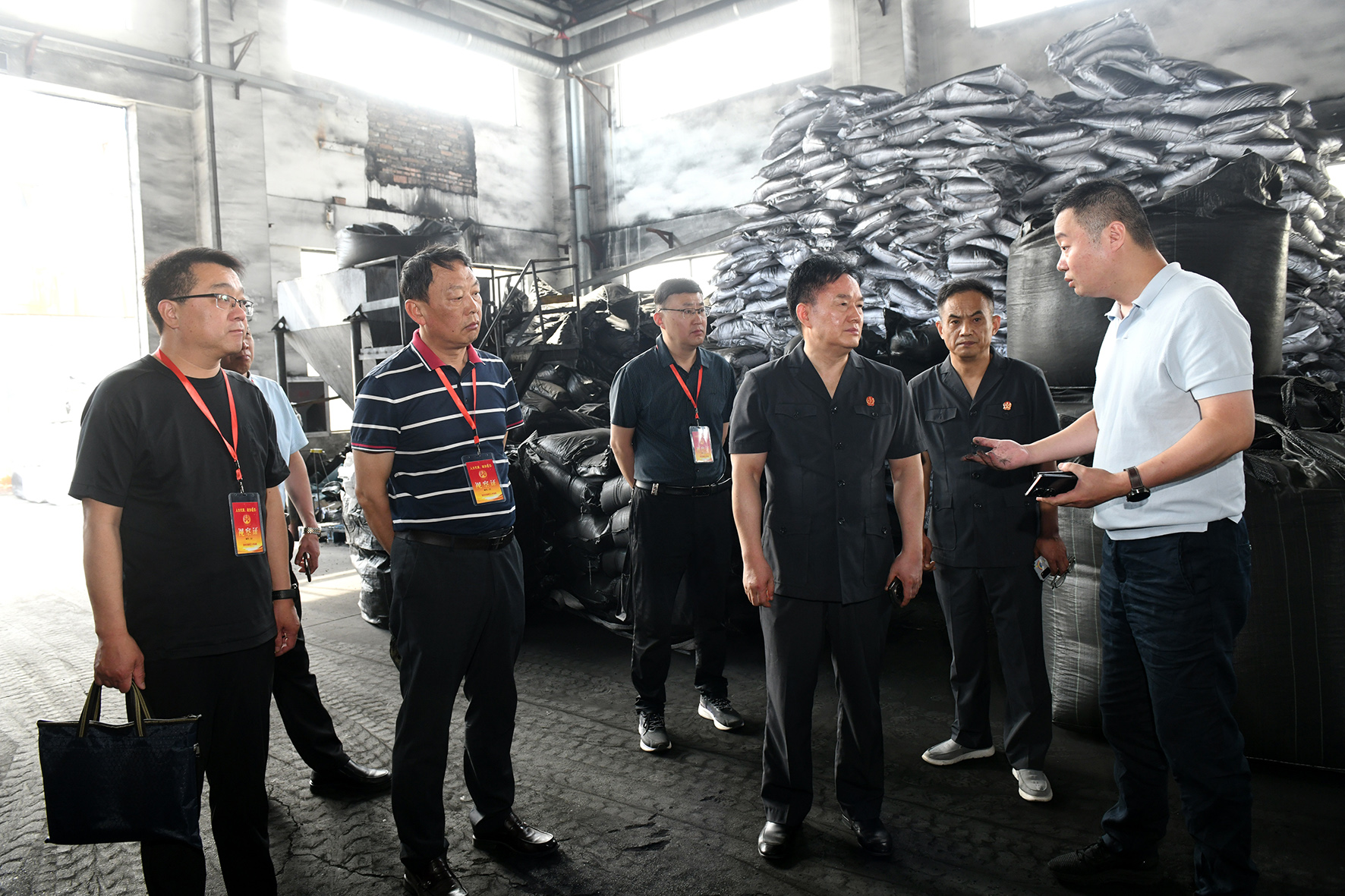 圖為執(zhí)行法官和人大代表、政協(xié)委員在轄區(qū)一家涉案民營(yíng)企業(yè)生產(chǎn)車間實(shí)地研判,助企紓困。