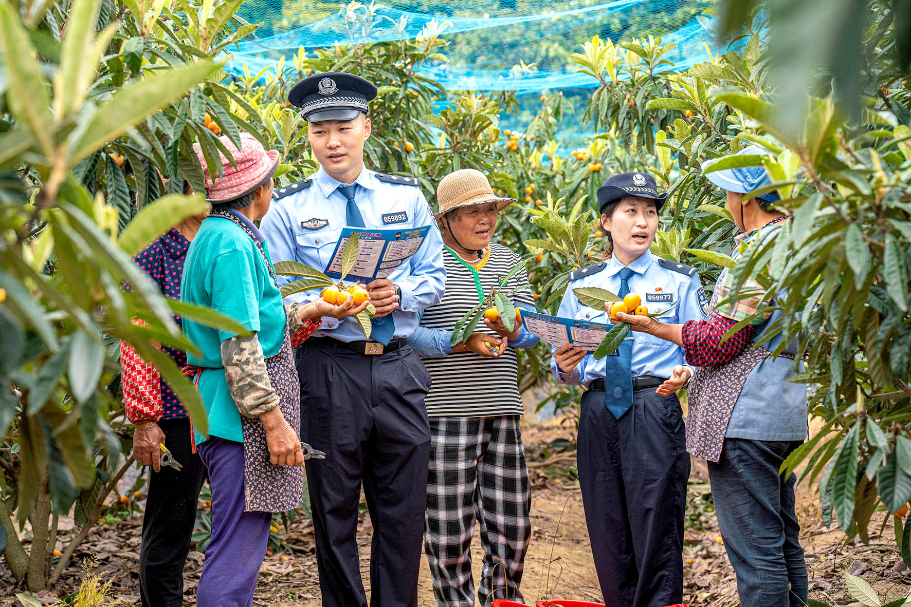 圖為民警向果農(nóng)們開(kāi)展電信詐騙防范宣傳。