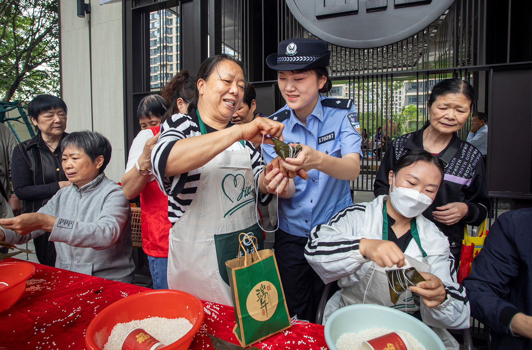 6月7日,浙江省臺(tái)州市公安局黃巖分局民警走進(jìn)西江社區(qū)與群眾一起包粽子、拉家常,同時(shí)開展反詐防范宣傳。