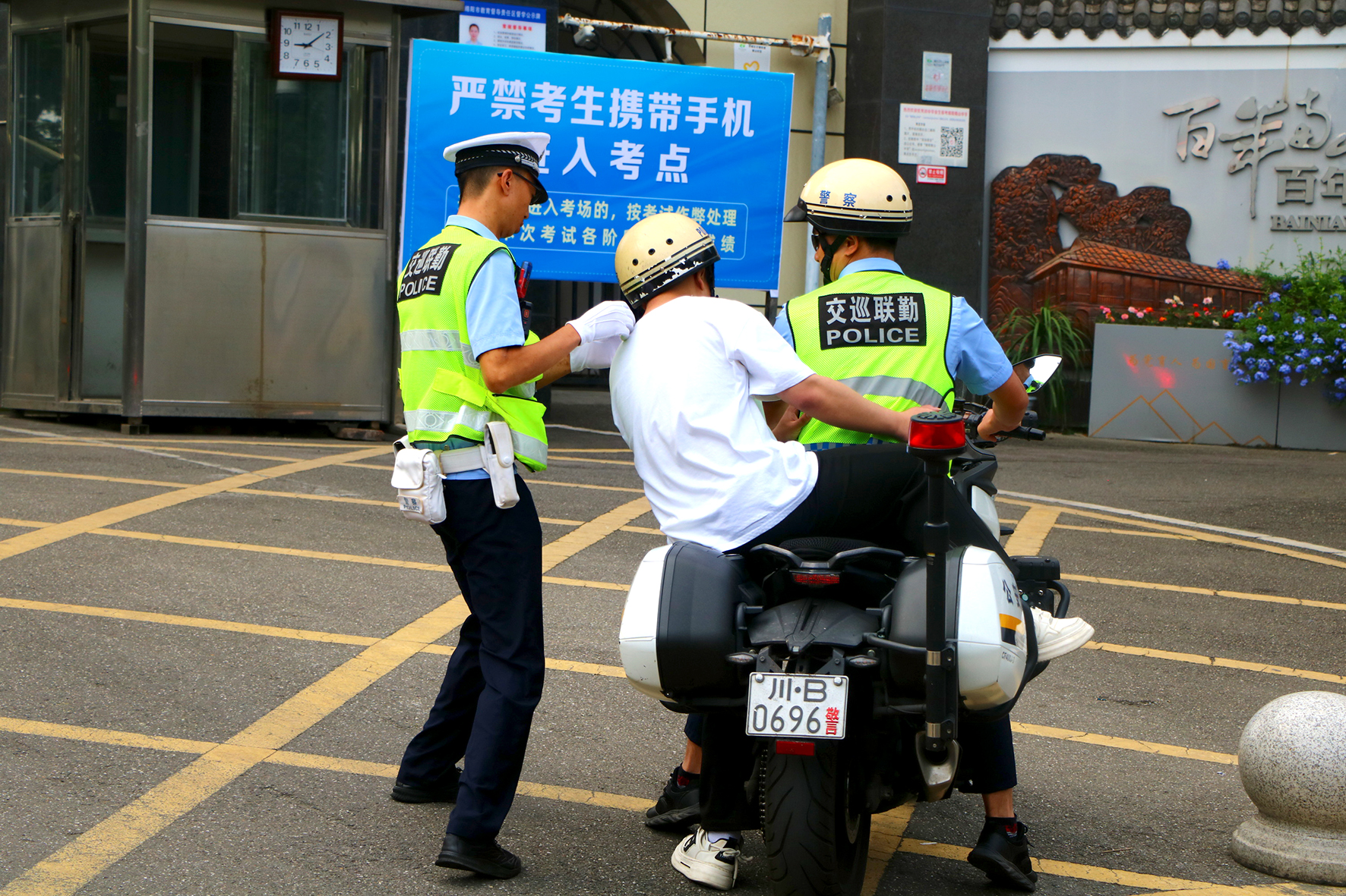 6月12日,四川省綿陽(yáng)市中考南山中學(xué)考點(diǎn),執(zhí)勤的綿陽(yáng)市公安局交警支隊(duì)直屬一大隊(duì)民警接到帶隊(duì)老師求助,一位考生不慎將準(zhǔn)考證遺落在學(xué)校。民警立即騎上警摩帶考生往返二十多公里,順利取回準(zhǔn)考證。
