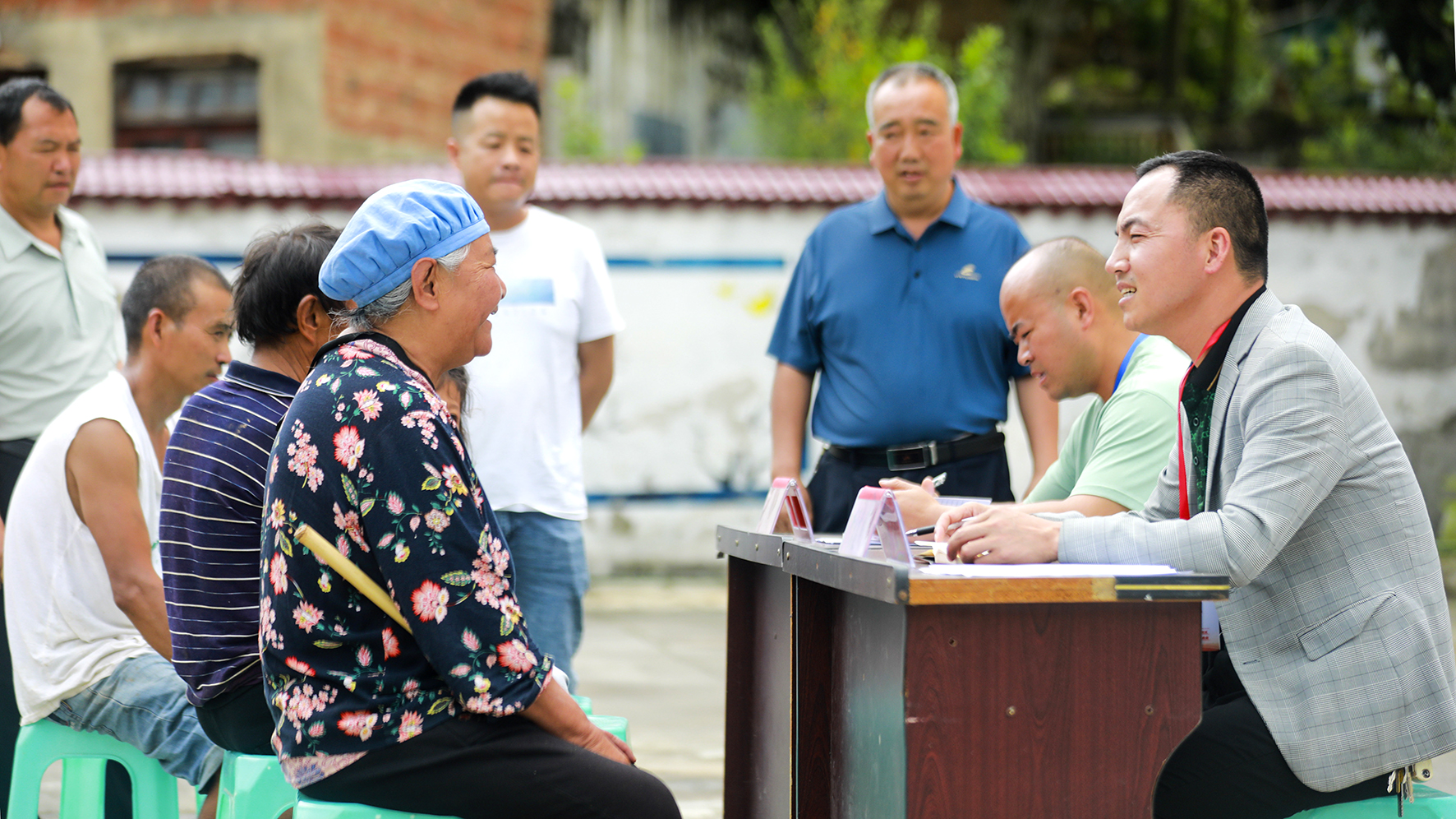圖為7月1日,雨朵鎮(zhèn)人大代表在登高社區(qū)認(rèn)真聽(tīng)取群眾的意見(jiàn)和建議。