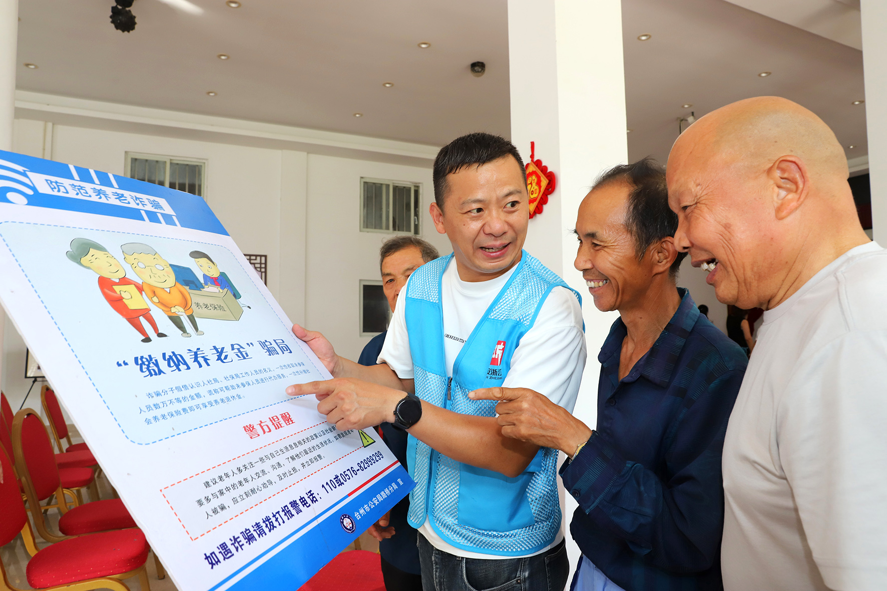 7月2日,浙江省臺州市路橋區(qū)路北街道的網(wǎng)格員在向老人曝光不法分子常見的詐騙伎倆。