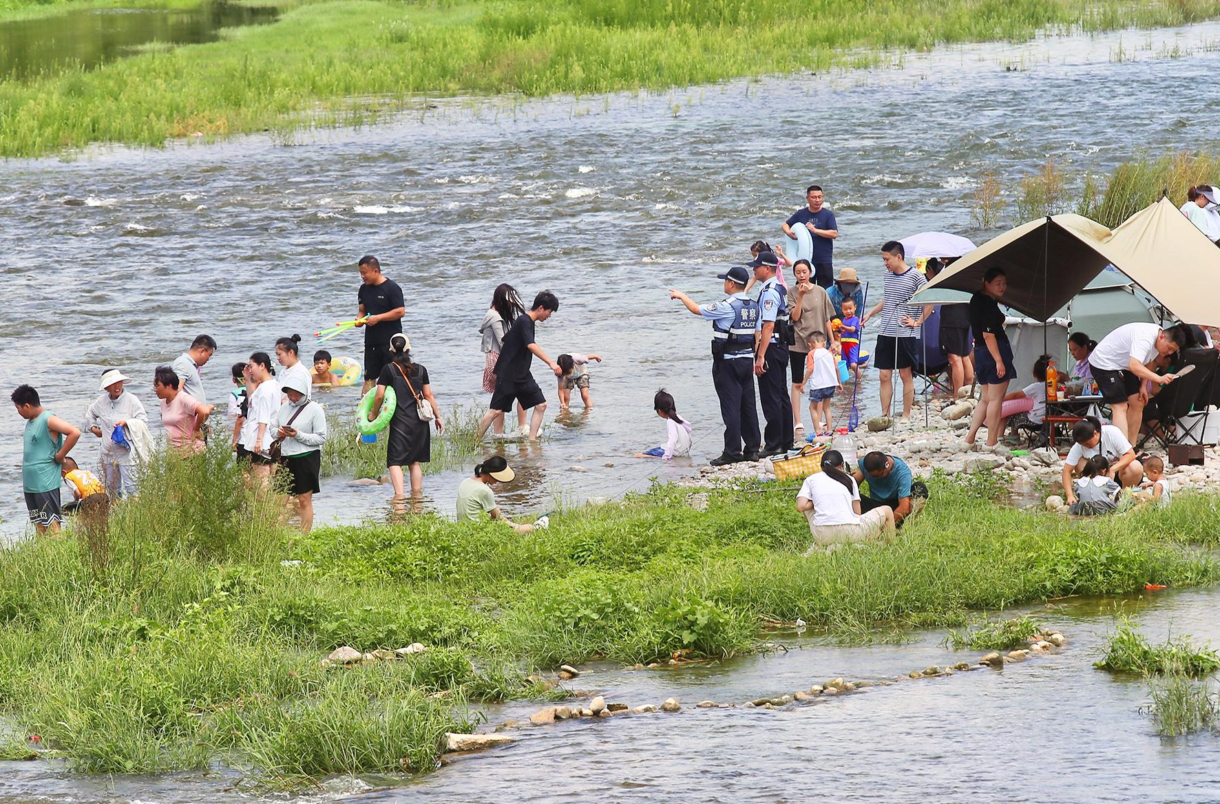 8月2日,山東省濟(jì)南市公安局市中區(qū)分局黨家莊派出所民警在玉符河附近巡邏,對(duì)下水游玩的市民游客開(kāi)展安全教育。自夏季治安打擊整治行動(dòng)開(kāi)展以來(lái),濟(jì)南市公安局市中區(qū)分局持續(xù)強(qiáng)化景區(qū)巡防力度,全面加強(qiáng)隱患排查,全力做好安全宣講,為群眾提供服務(wù),確保轄區(qū)和諧安寧。