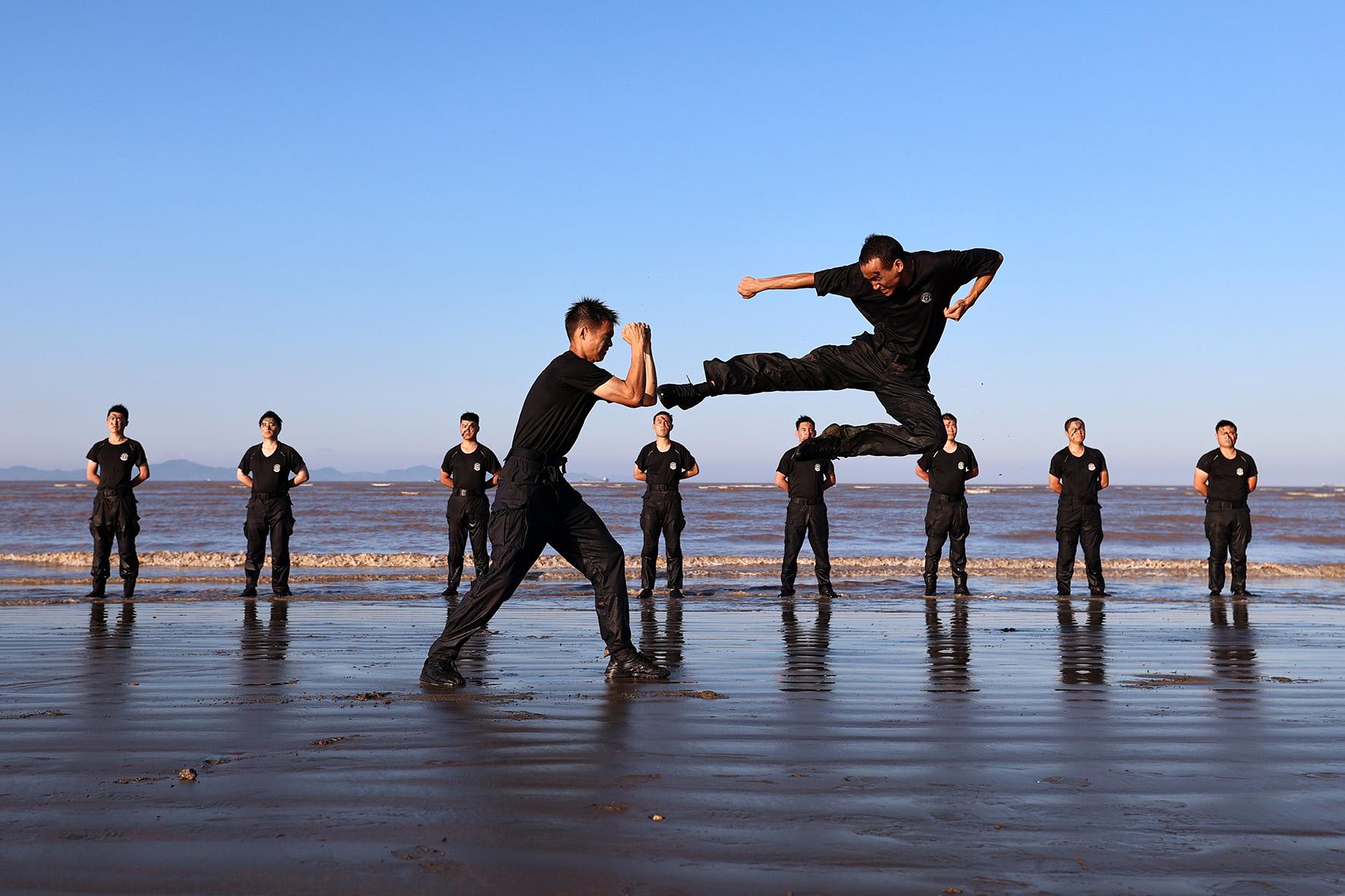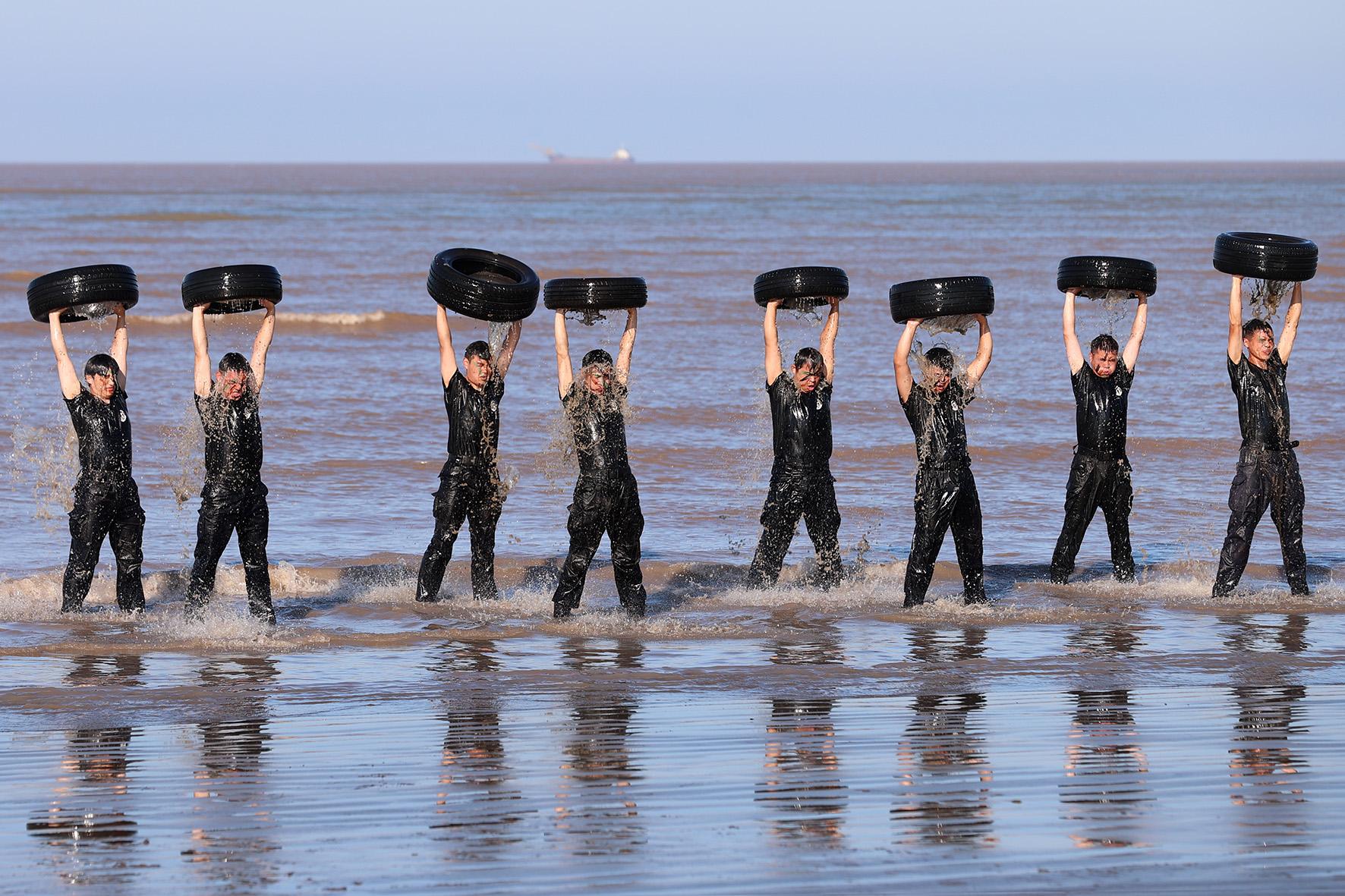 8月5日,浙江省舟山市岱山縣公安局巡特警大隊結合全警實戰(zhàn)大練兵活動開展“夏練三伏礪精兵”主題體能強化訓練。