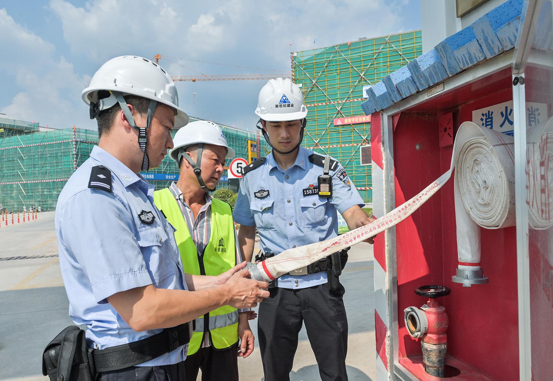 圖為 8月6日,壺山派出所 “項(xiàng)目警長(zhǎng)”在重點(diǎn)項(xiàng)目施工現(xiàn)場(chǎng)開(kāi)展安全檢查,并為高溫下作業(yè)的建設(shè)者送上防暑藥品。