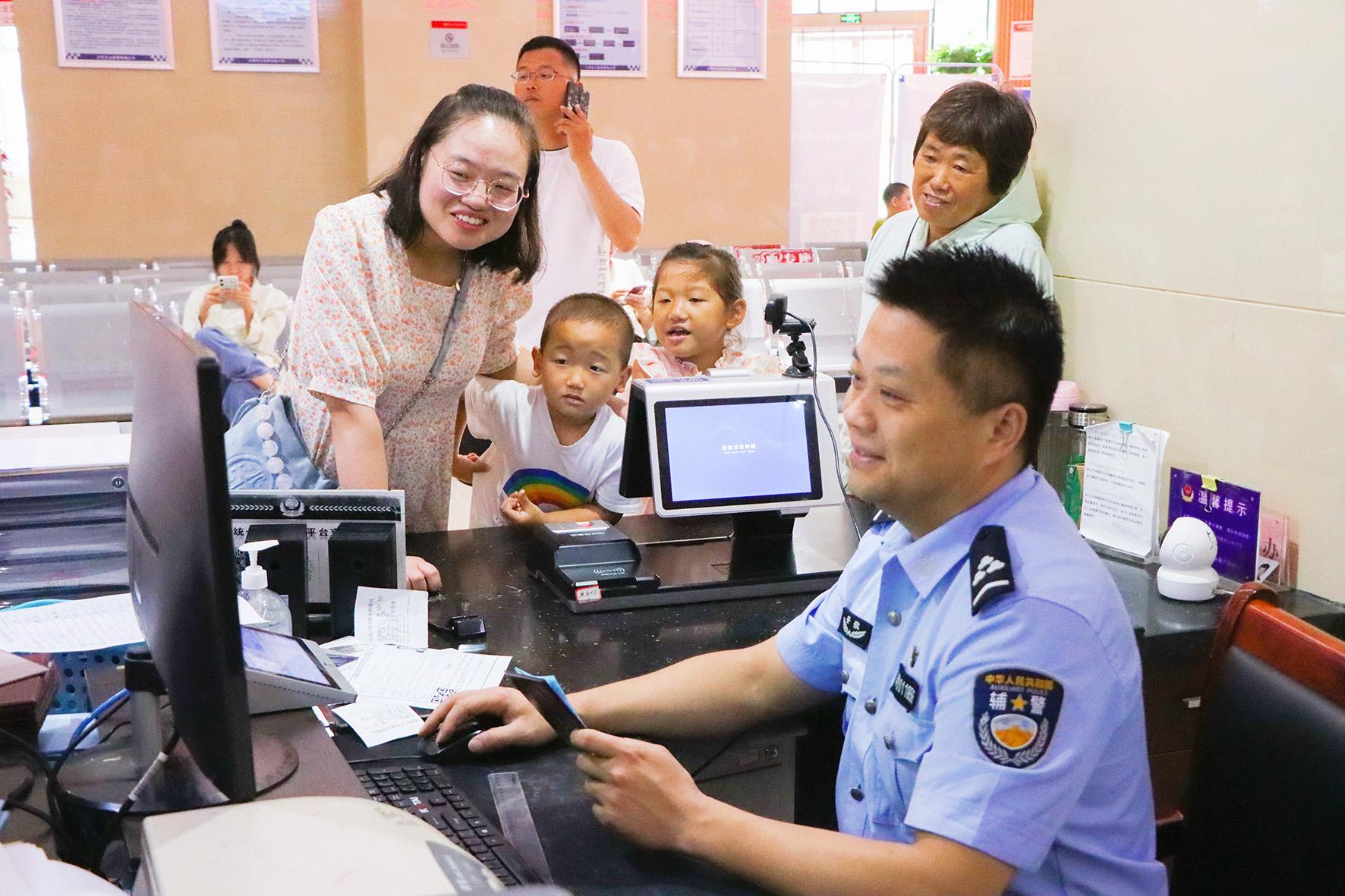 8月7日,安徽省合肥市公安局瑤海分局戶政中心民警輔警為孩子們辦理身份證。暑假期間,瑤海分局戶政中心科學(xué)調(diào)配警力,增設(shè)受理窗口,積極應(yīng)對(duì)暑期辦證高峰。
