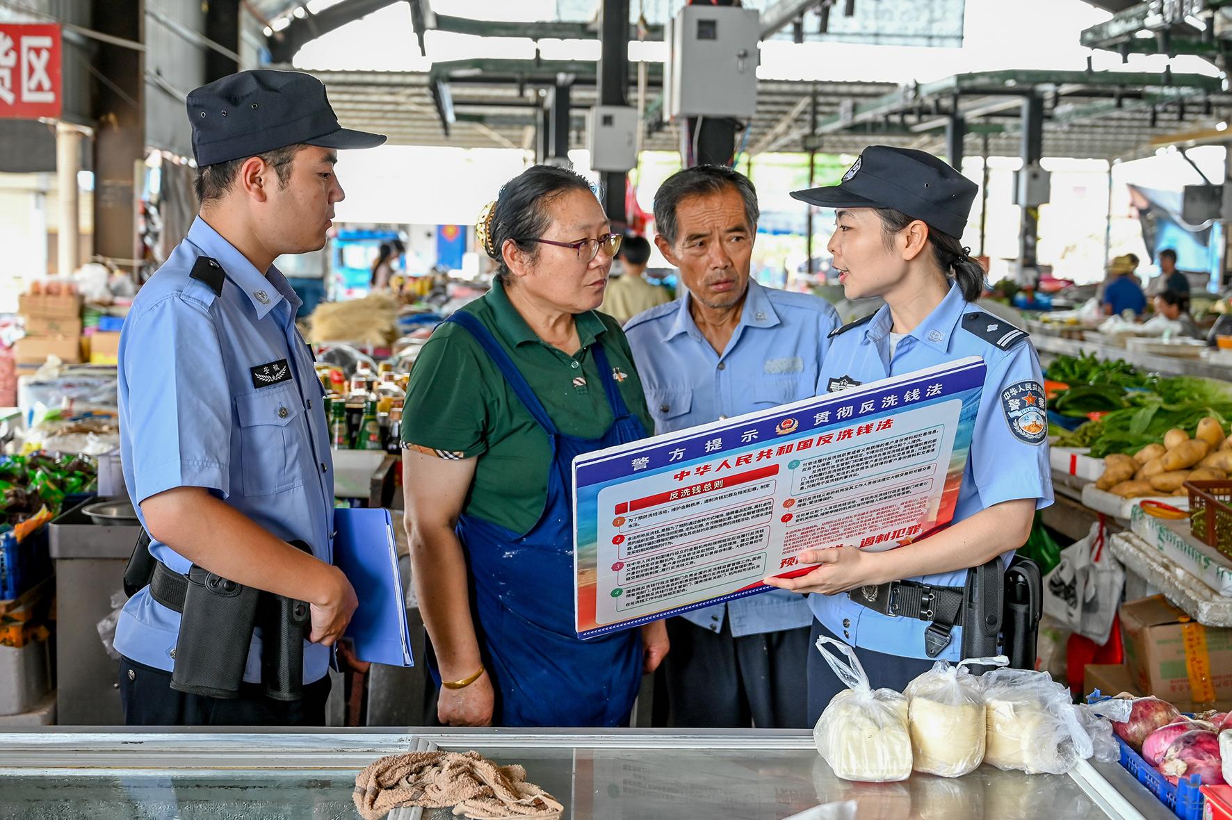 8月16日,安徽省和縣公安局經(jīng)偵大隊民警向群眾開展反洗錢法宣傳,提醒群眾不要貪圖小利,避免落入陷阱。