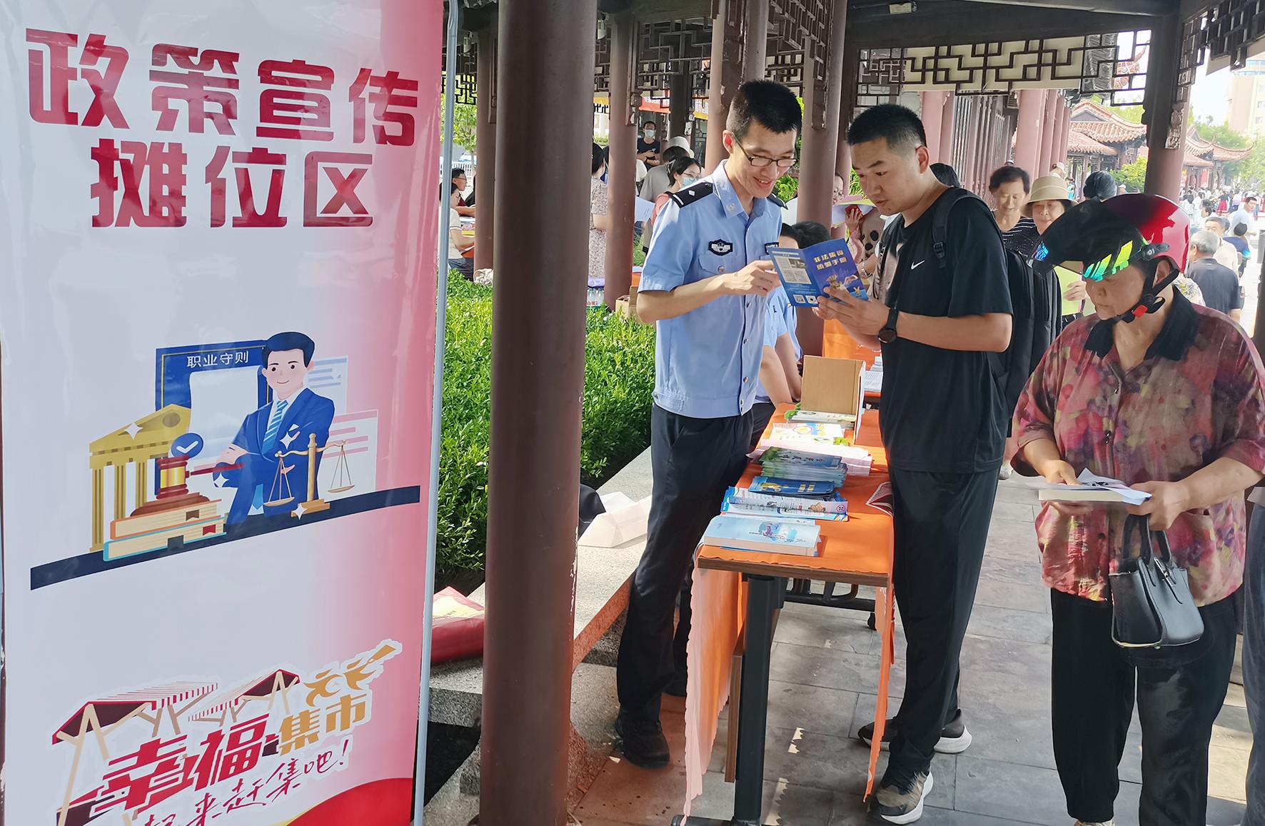 8月17日,山東省煙臺市長島綜合實驗區(qū)舉辦“連心暖島·幸福集市”活動。煙臺市公安局長島分局以此為契機,組織民警來到活動現場,向群眾廣泛宣傳防非法集資、禁毒反詐等知識,提高群眾的防范意識。
