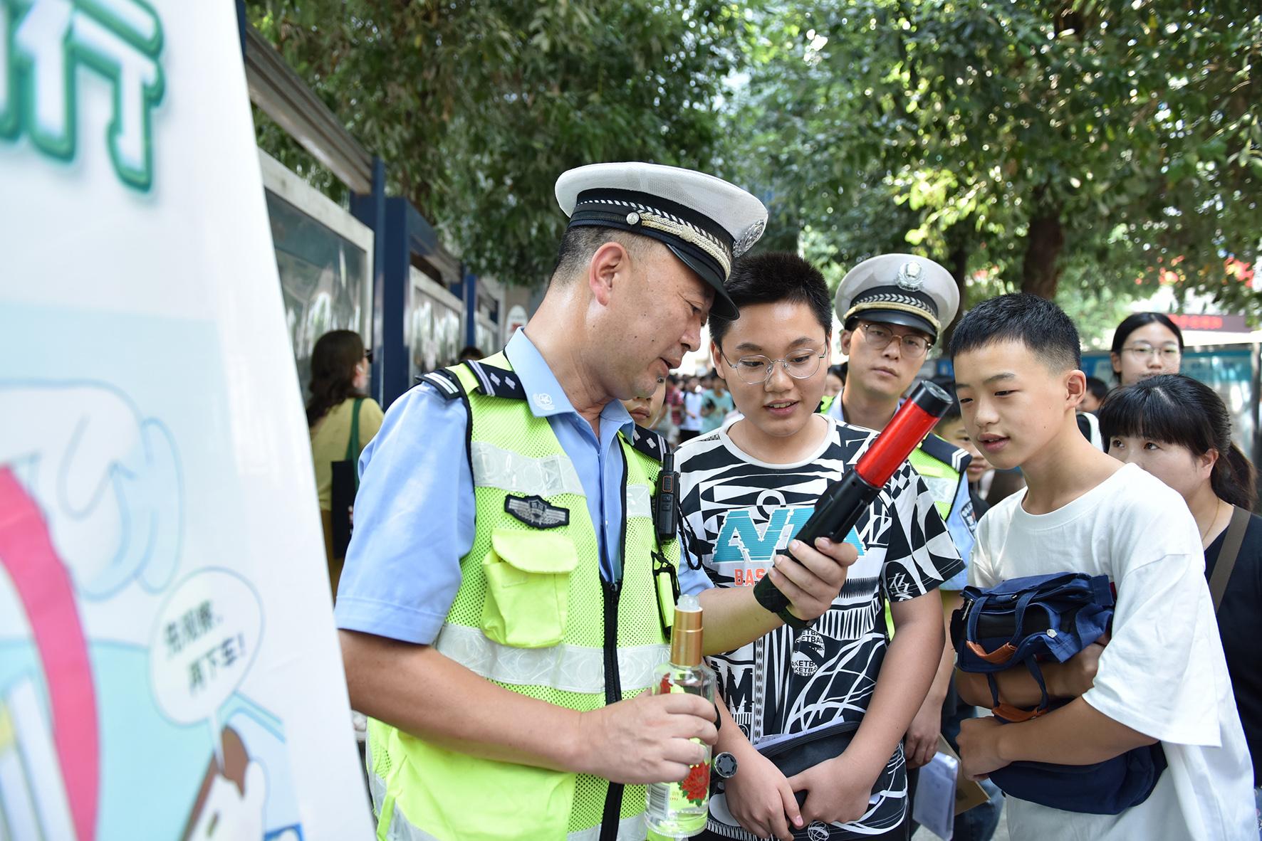 8月21日,四川省綿陽市公安局交警支隊直屬一大隊利用轄區(qū)學(xué)校開放日活動,在校園內(nèi)“擺攤”,對準(zhǔn)初一學(xué)生及家長進(jìn)行交通安全知識宣講。
