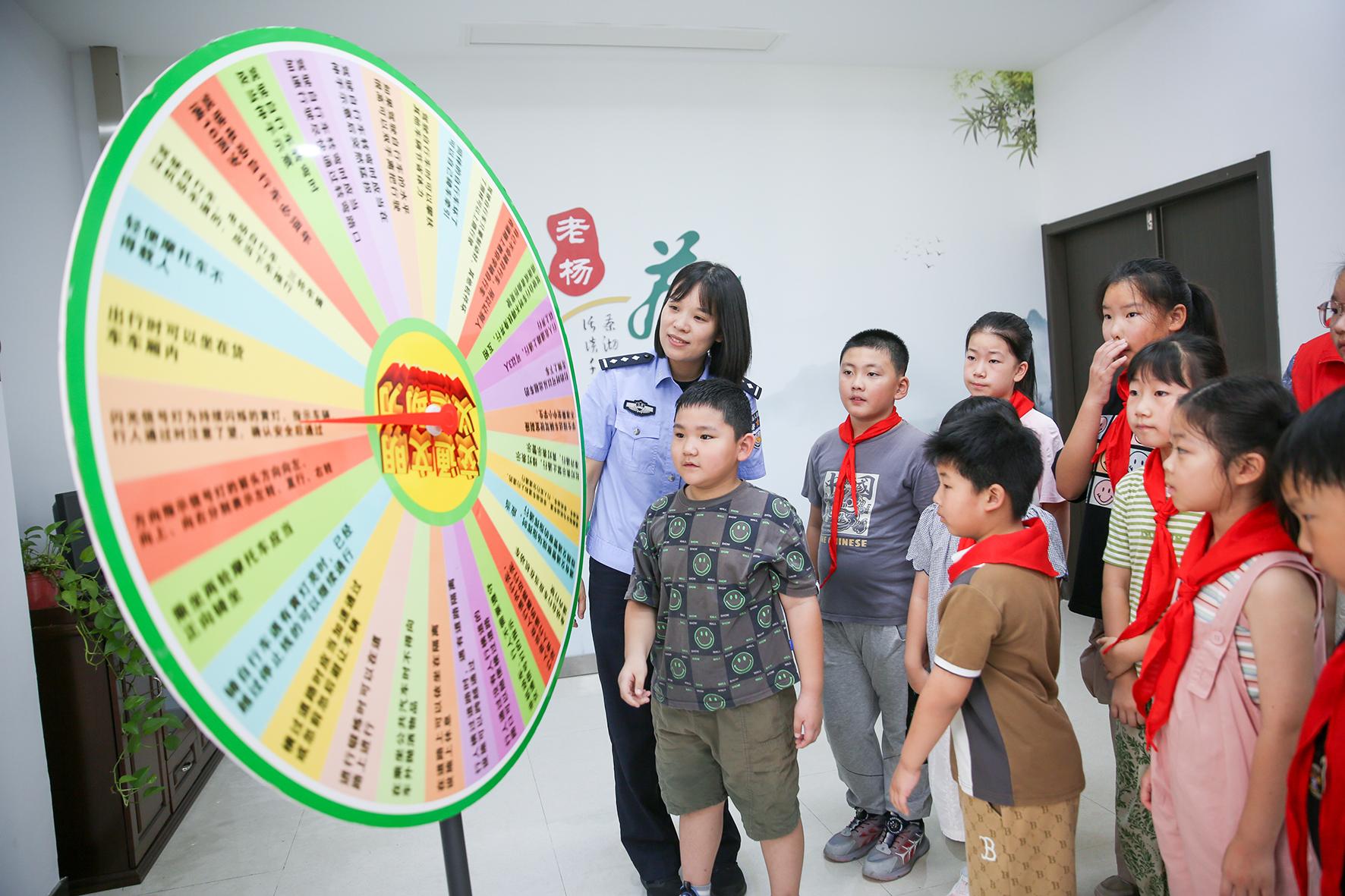 8月22日,江蘇省如皋市高新區(qū)交警中隊民警在城南街道平明社區(qū)向?qū)W生們開展交通安全宣傳。