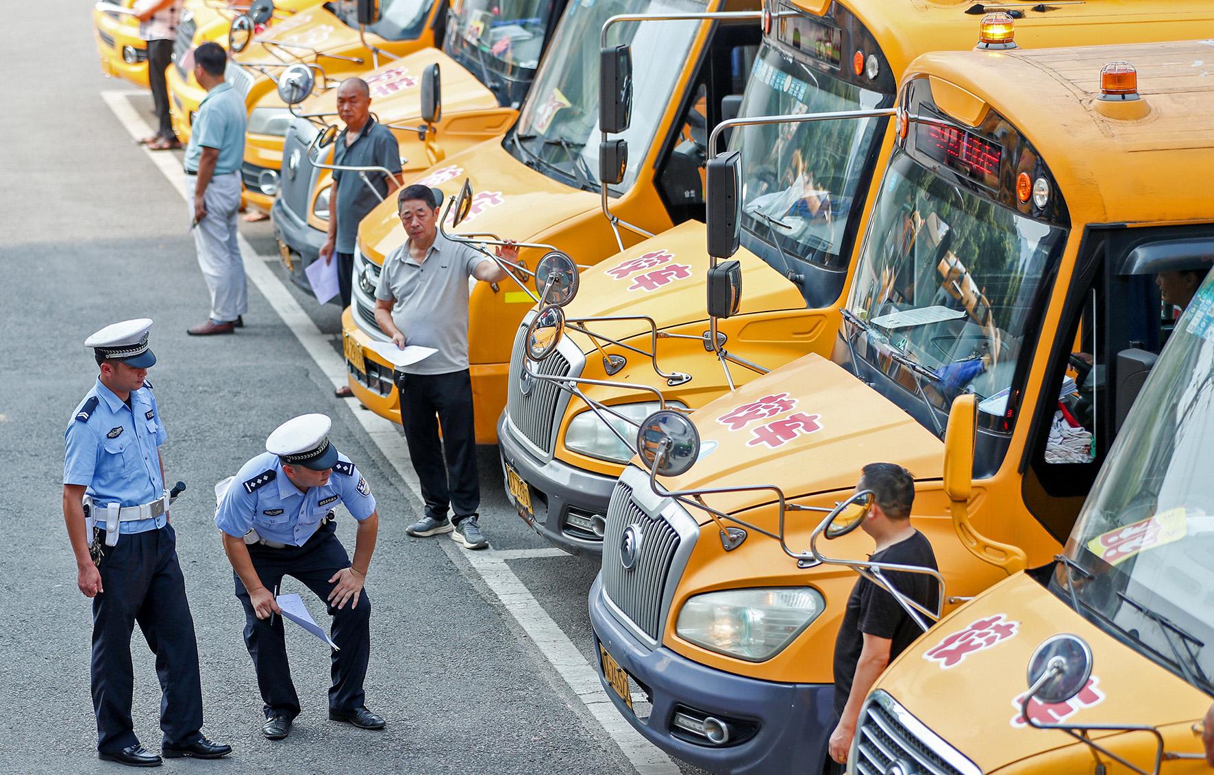8月28日,四川省華鎣市公安局交通警察大隊組織民警對轄區(qū)內(nèi)接送學生的近50輛校車,集中開展安全性能和隨車配備的安全應急器材設備等檢查,及時排除安全隱患,確保學生乘車平安。