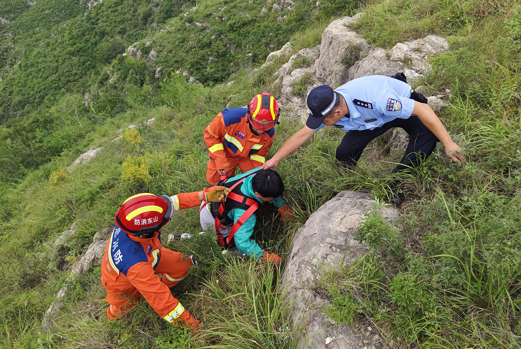 9月2日11時(shí),山東省濟(jì)南市公安局市中區(qū)分局興隆派出所接到報(bào)警稱,一女子在礦村黑裕頂山高100余米的懸崖下被困。了解情況后,民警聯(lián)合領(lǐng)秀城消防救援站隊(duì)員立即趕往現(xiàn)場(chǎng),經(jīng)過三個(gè)半小時(shí)努力,終于將其轉(zhuǎn)移至安全地帶。
