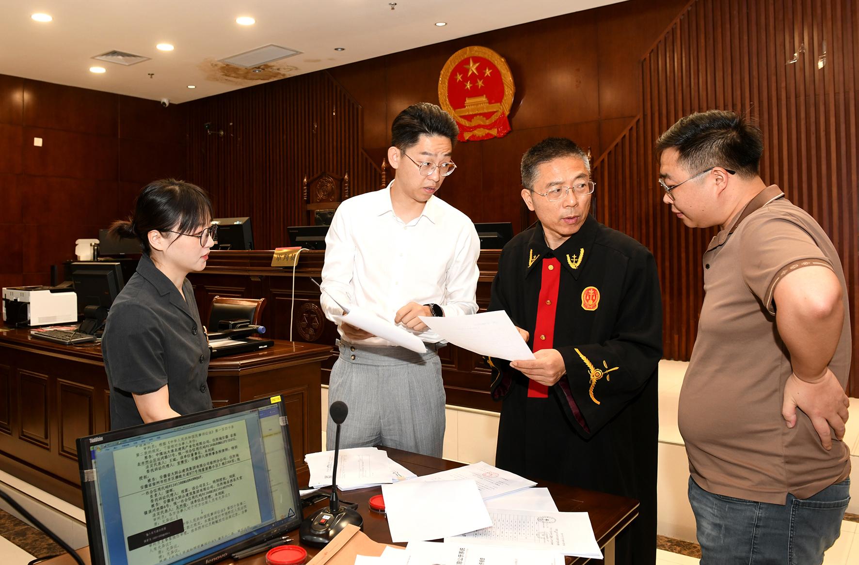 9月5日,在安徽省宿州市埇橋區(qū)人民法院,民事審判第二庭法官對一起合同糾紛案雙方當(dāng)事人進(jìn)行庭前調(diào)解。