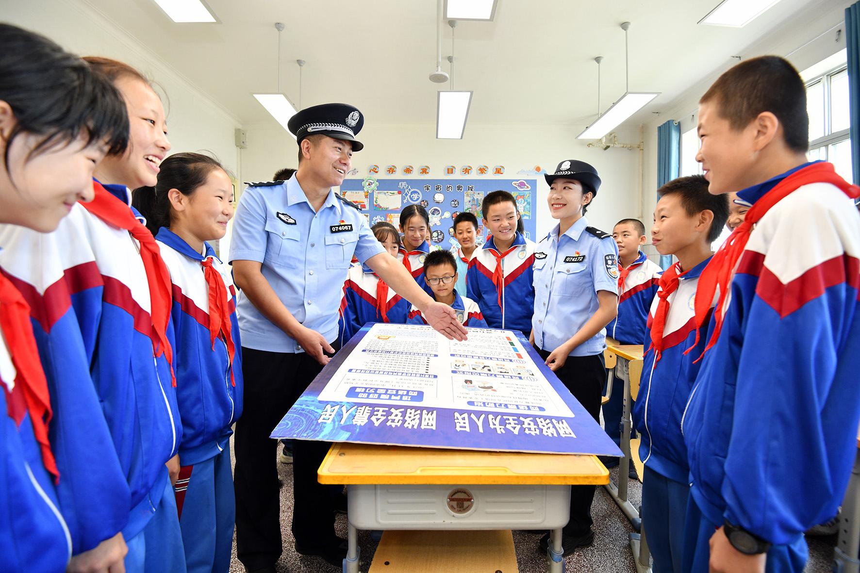 9月9日,上海市公安局崇明分局城橋派出所民警在轄區(qū)學校向同學們介紹網(wǎng)絡安全知識。