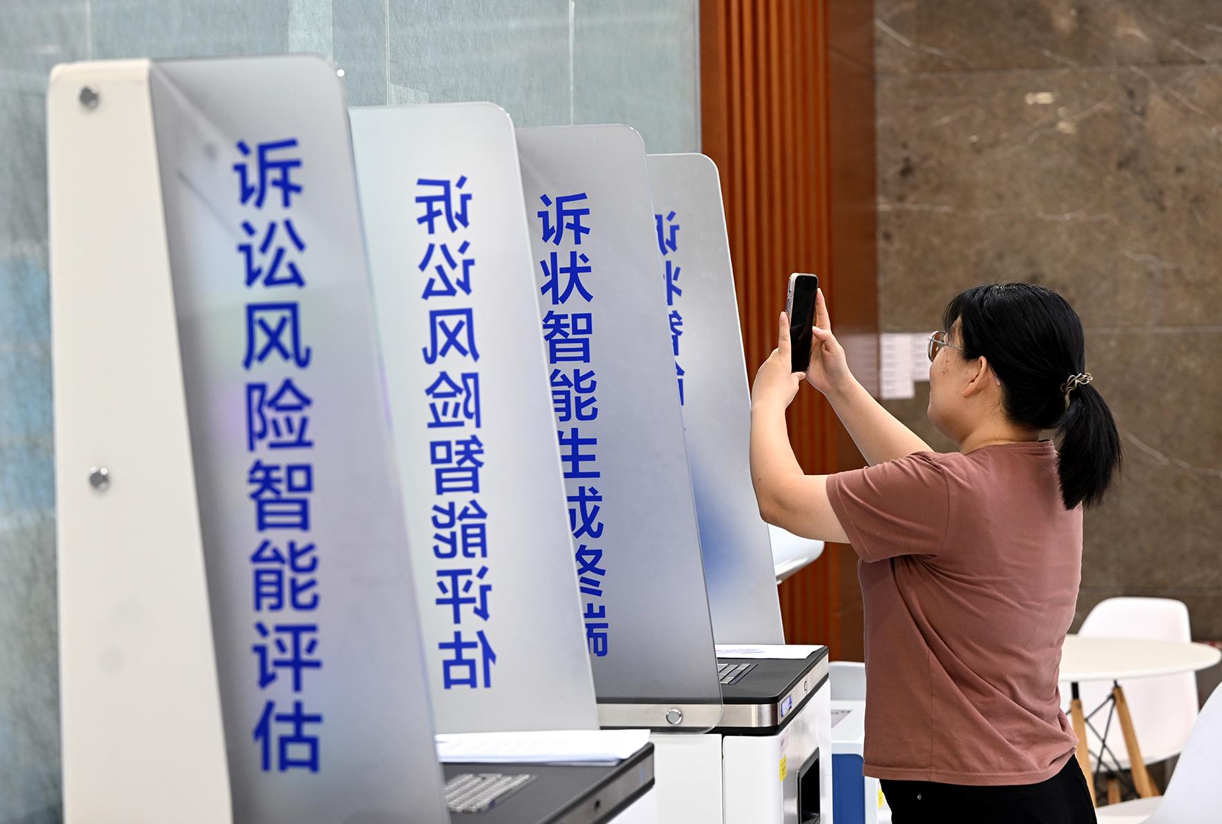 當(dāng)事人使用法院接待大廳的訴狀智能生成終端機器上制作起訴書。