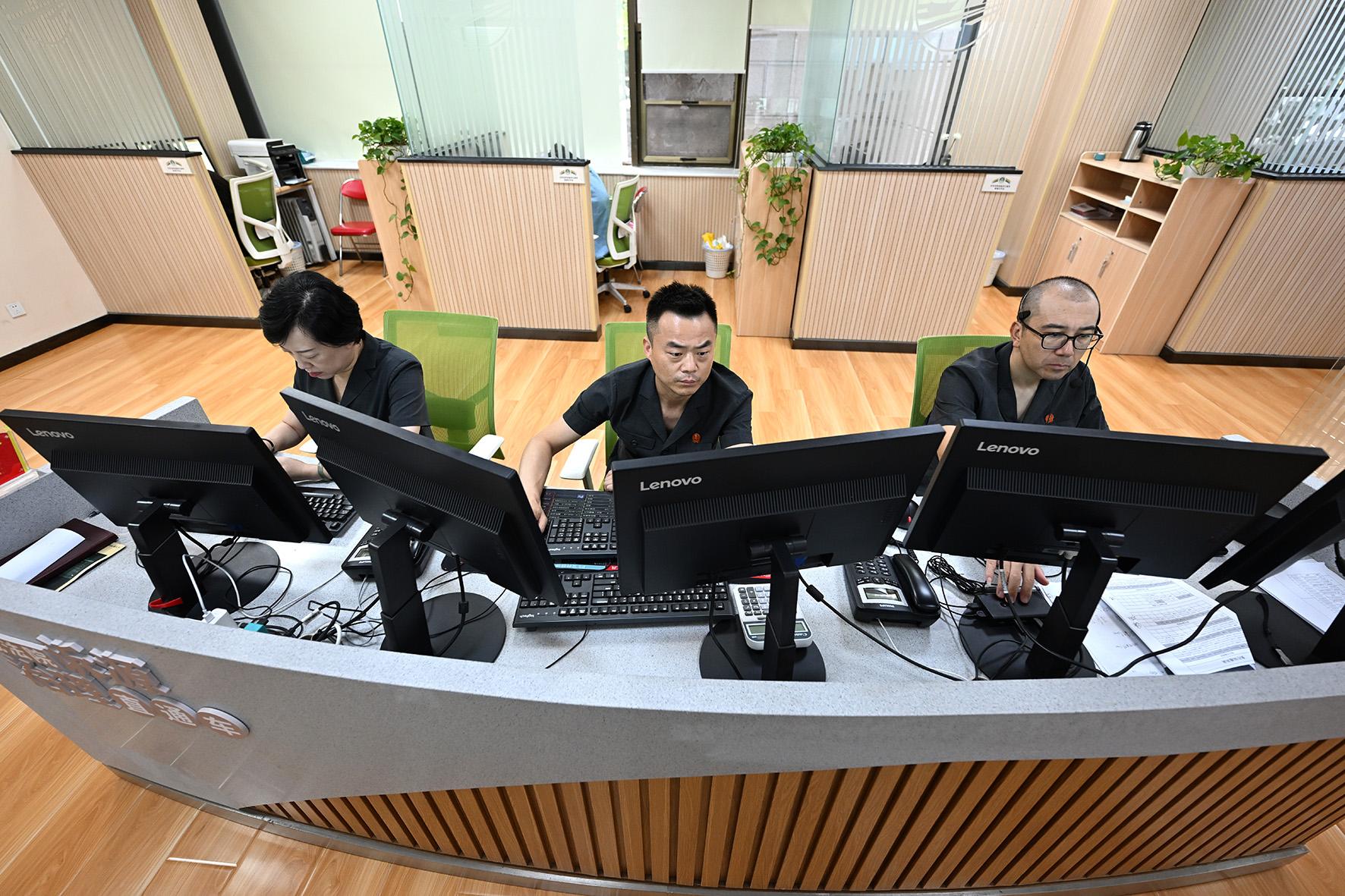 12368訴訟服務(wù)平臺值班法官在進行案件回訪。該服務(wù)平臺平均每年接聽電話3000余人次。