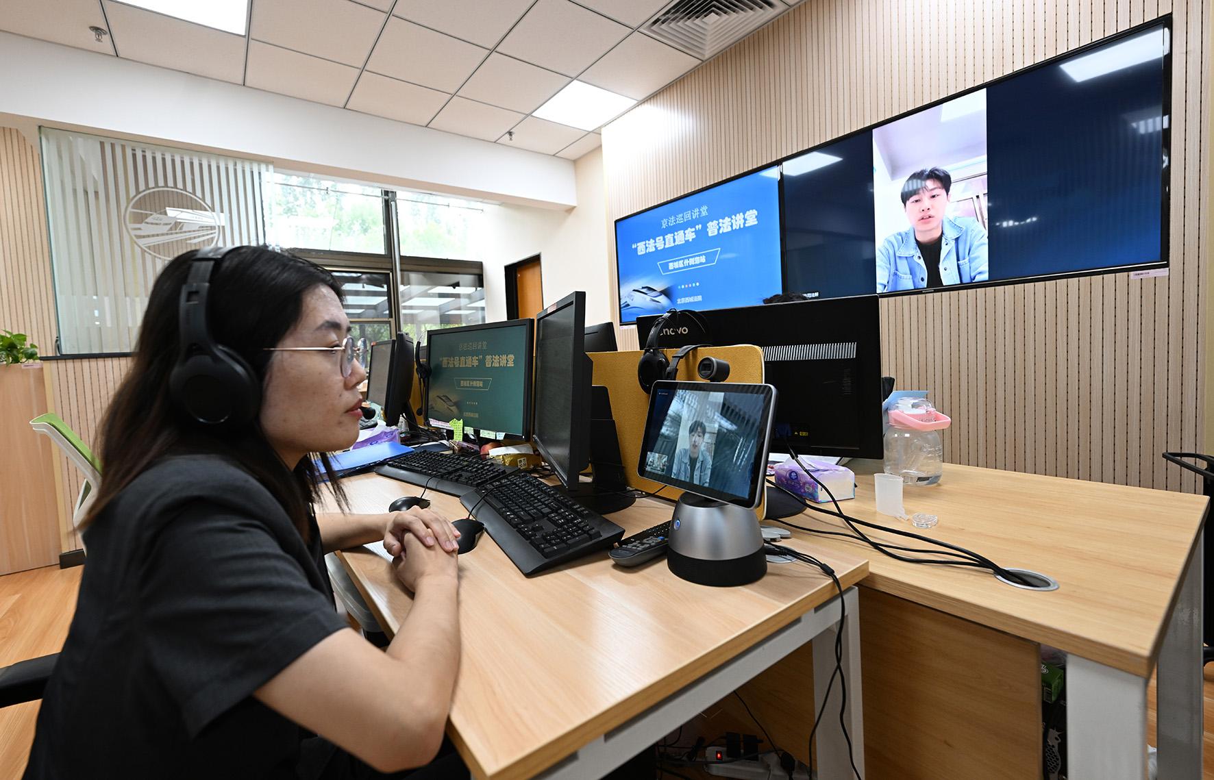 多元解紛訴調(diào)對接中心法官王運佳正在網(wǎng)上審理一起涉北京某知識產(chǎn)權(quán)代理公司的商標代理糾紛案件。