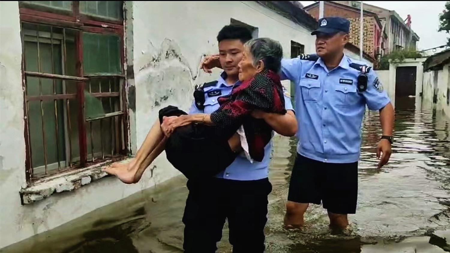 圖為9月21日,民警輔警正在救助被困群眾。