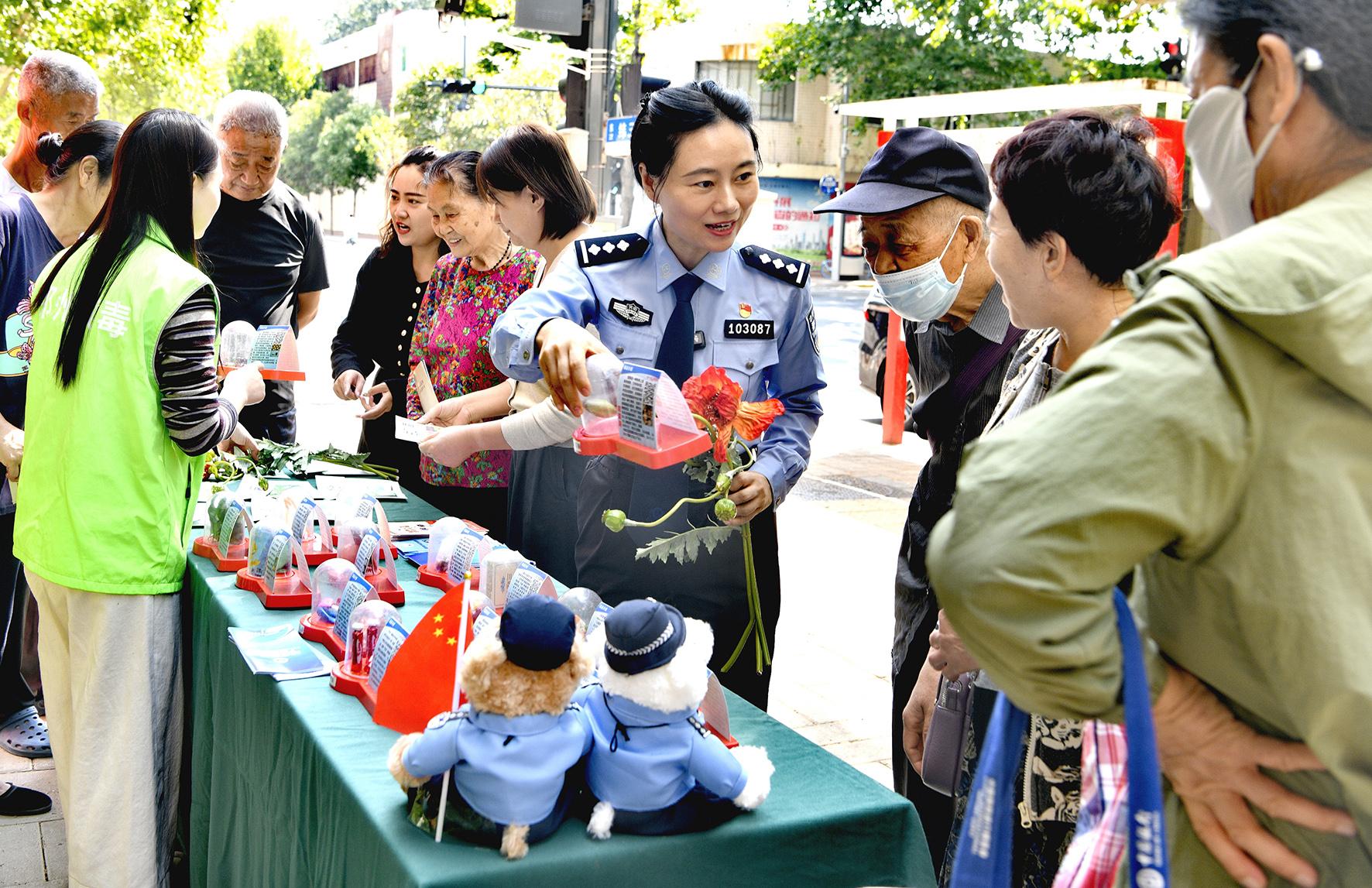 9月23日,河南省鄭州市公安局金水分局巡特警與經八路派出所民輔警走進社區(qū)開展禁毒宣傳活動。