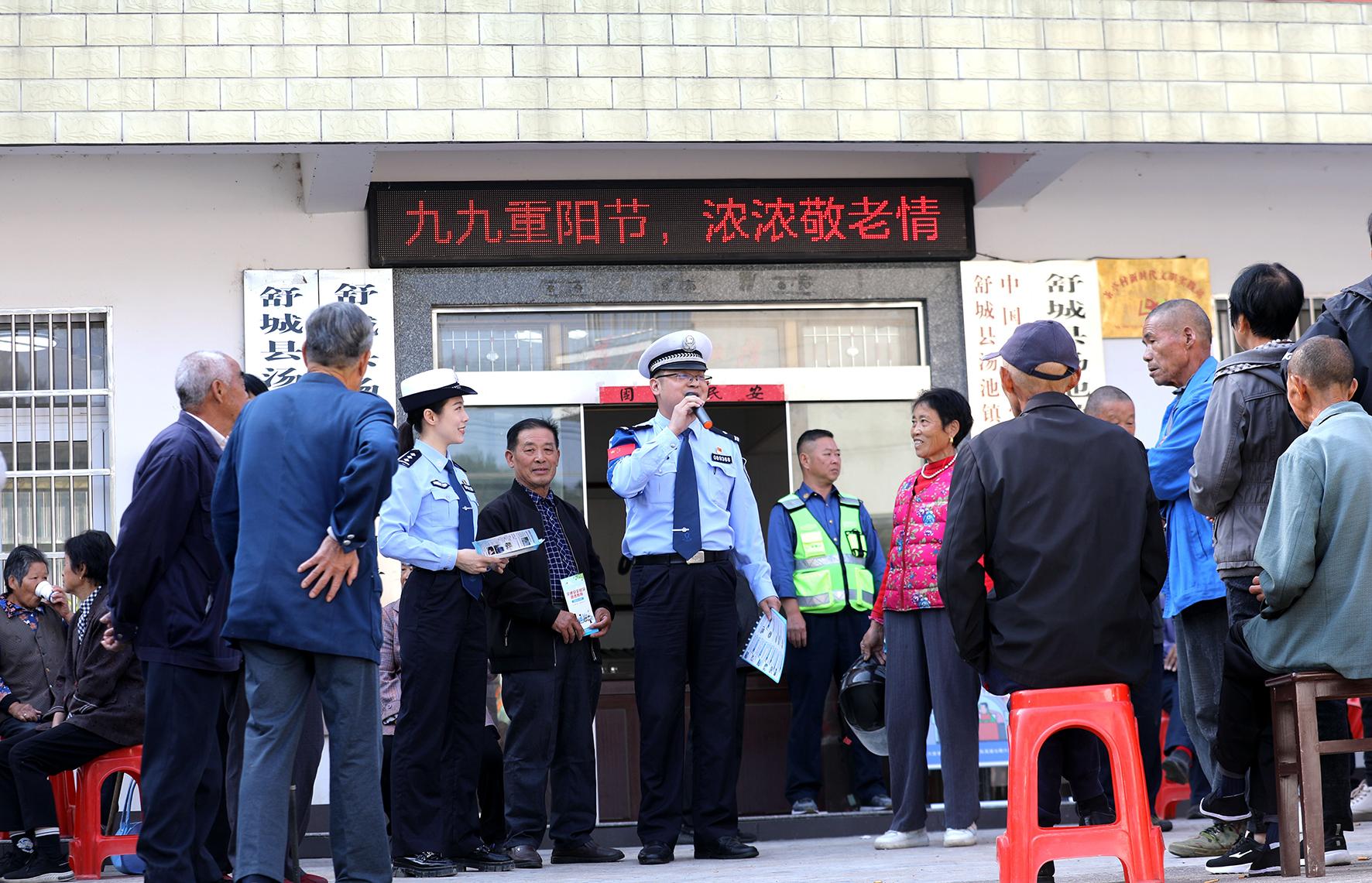 10月11日,安徽省六安市公安局交警支隊高速六大隊聯(lián)合舒城縣公安局交管大隊、湯池派出所等單位走進湯池鎮(zhèn)茶亭村,開展“九九重陽 久久安康——護老行動暨交通安全宣傳進農村”活動。