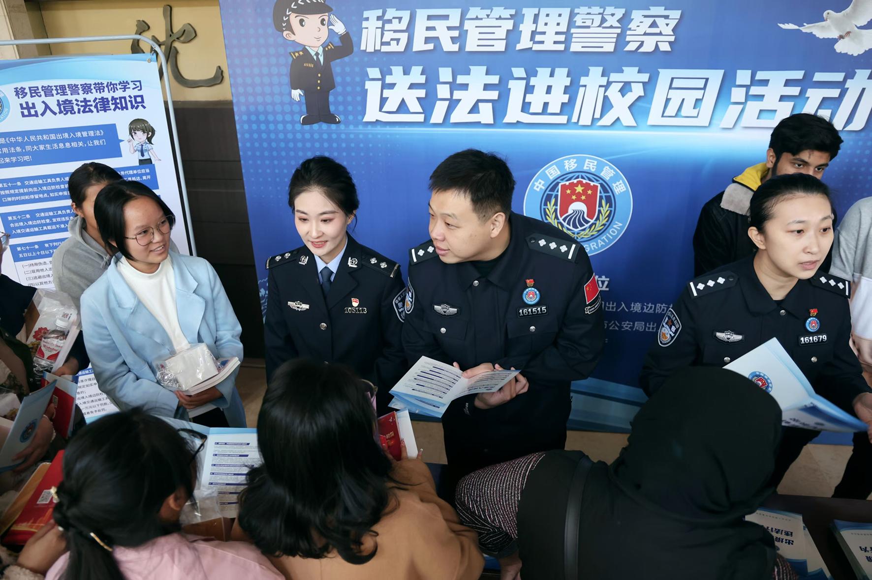 10月11日,遼寧出入境邊防檢查站聯(lián)合遼寧省公安廳出入境管理局、遼寧省司法廳等單位,在沈陽(yáng)醫(yī)學(xué)院開展“移民管理警察送法進(jìn)校園”活動(dòng)。