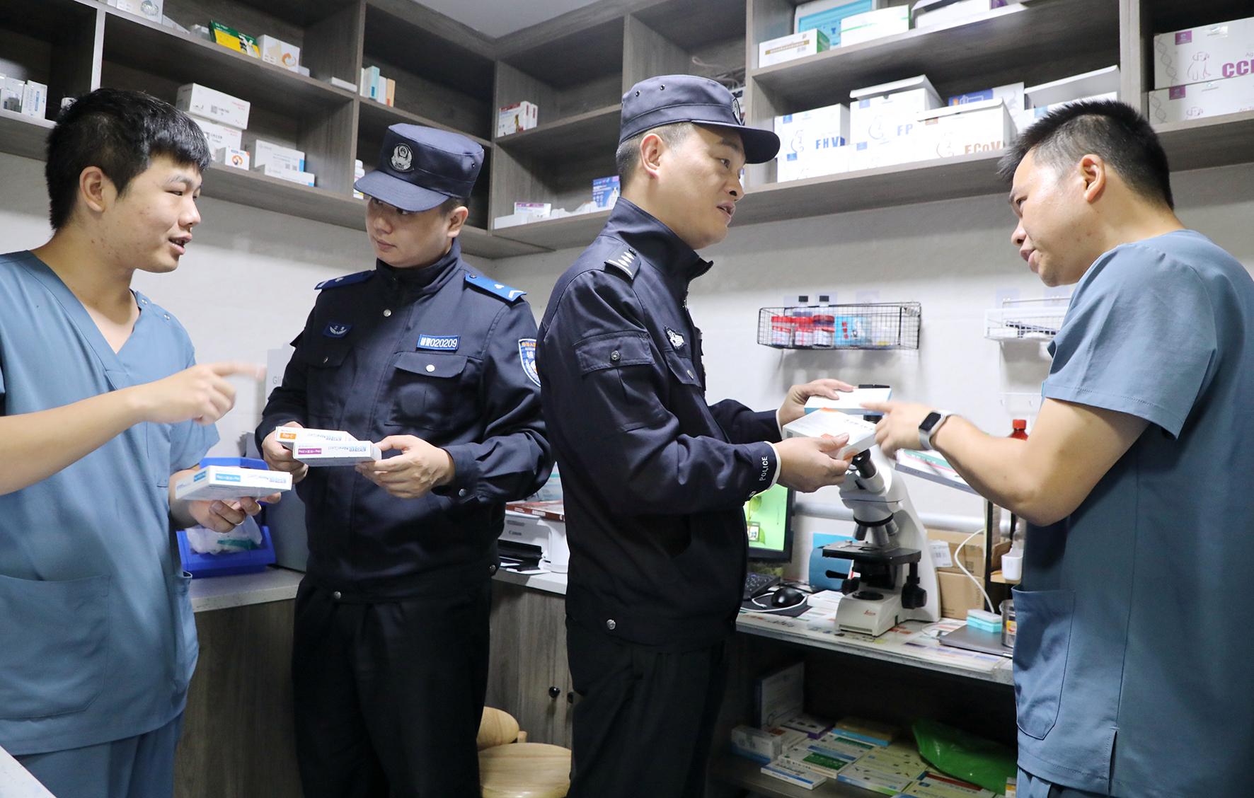 10月14日,江西省九江市公安局潯陽分局人民路派出所民警輔警通過實(shí)地查看、查閱銷售臺賬、現(xiàn)場詢問等方式開展獸用麻醉藥品和獸用精神藥品排查檢查。