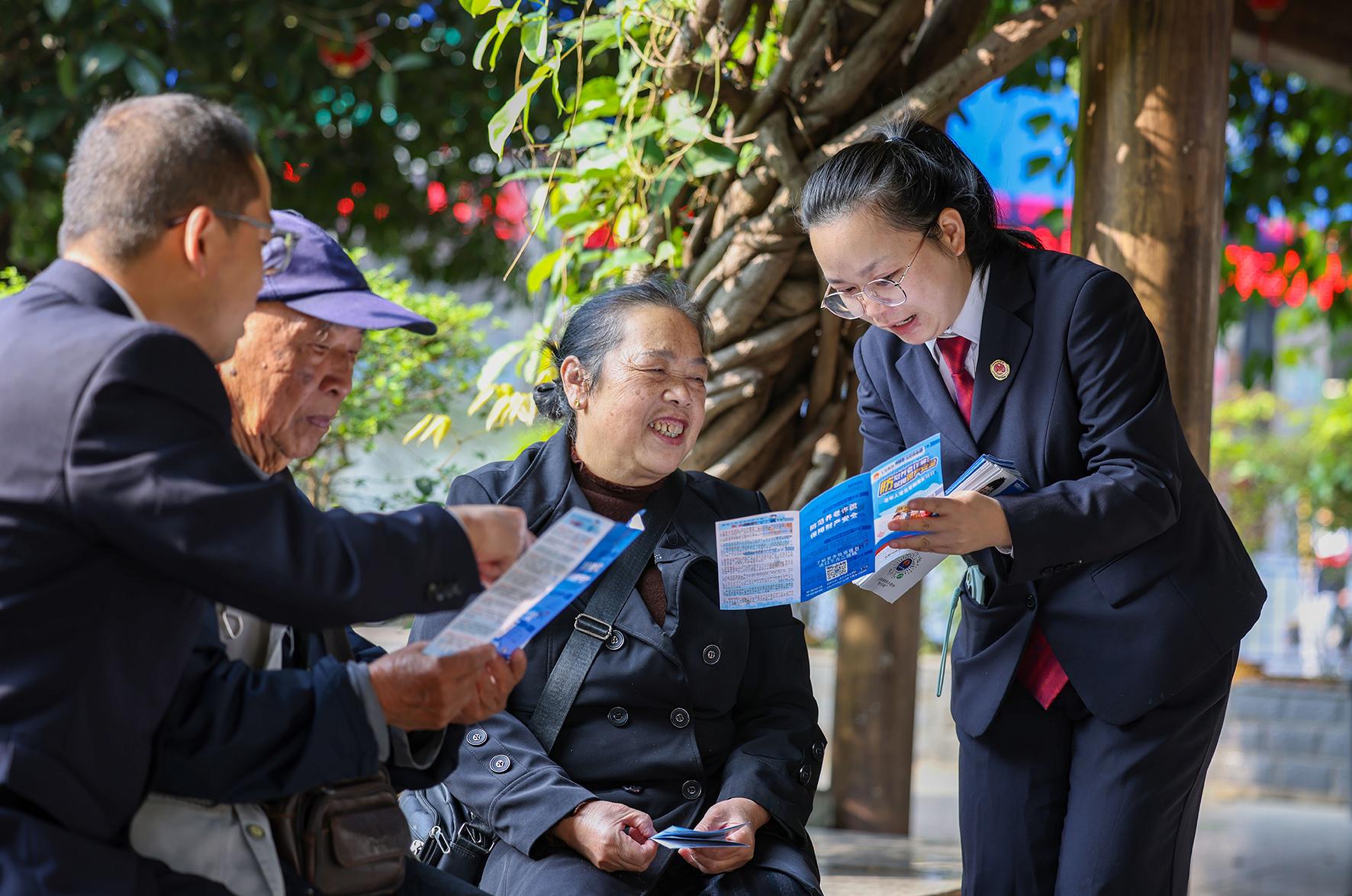 10月29日,貴州省玉屏侗族自治縣人民檢察院檢察官走進(jìn)皂角坪街道紫氣山社區(qū)開展防范養(yǎng)老詐騙知識宣傳。