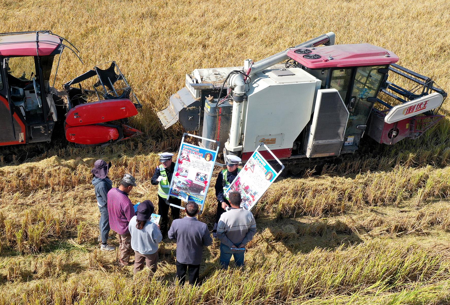 11月7日,安徽省蕪湖市公安局交警支隊鳩江大隊民警深入鳩江區(qū)湯溝鎮(zhèn),向秋收群眾宣傳交通安全知識。