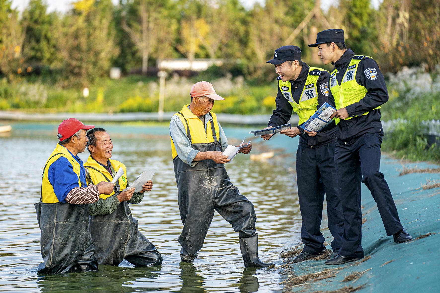 11月13日,上海市公安局崇明分局三星派出所民警來到養(yǎng)殖基地,在蟹塘邊向養(yǎng)殖戶們開展治安防范、反詐宣傳、食品安全提示等宣防工作,助力鄉(xiāng)村經(jīng)濟(jì)高質(zhì)量發(fā)展。